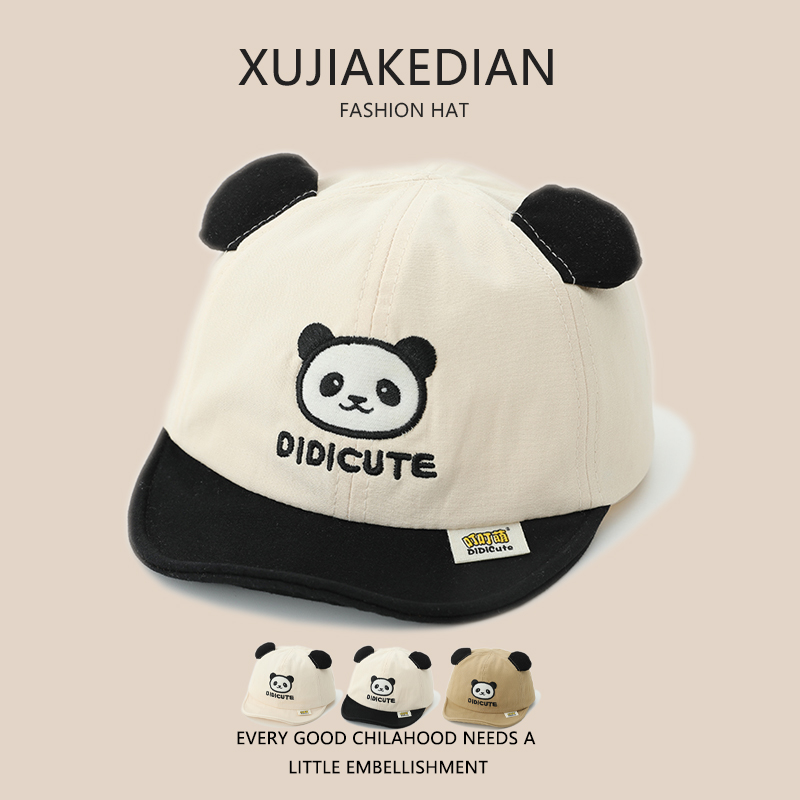 婴儿帽子春秋季软檐可爱熊猫男童鸭舌帽夏季遮阳女宝宝幼儿棒球帽
