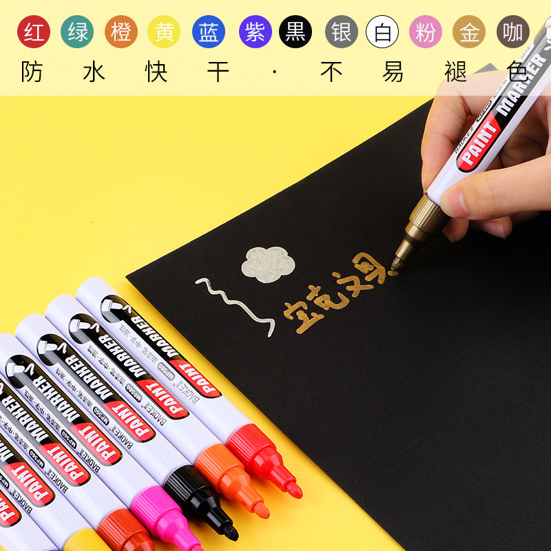 单支 宝克油漆笔油性记号笔轮胎补漆白色防水不易掉色画鞋黑12色DIY马克笔速干涂鞋笔金银色金属色签名签到笔