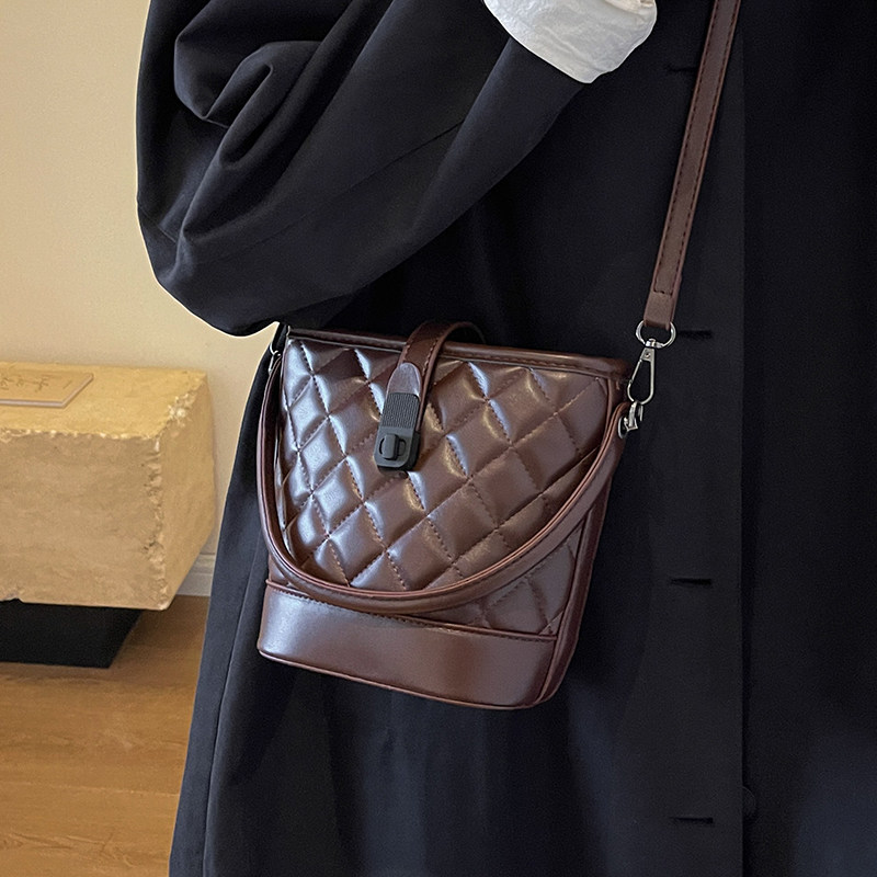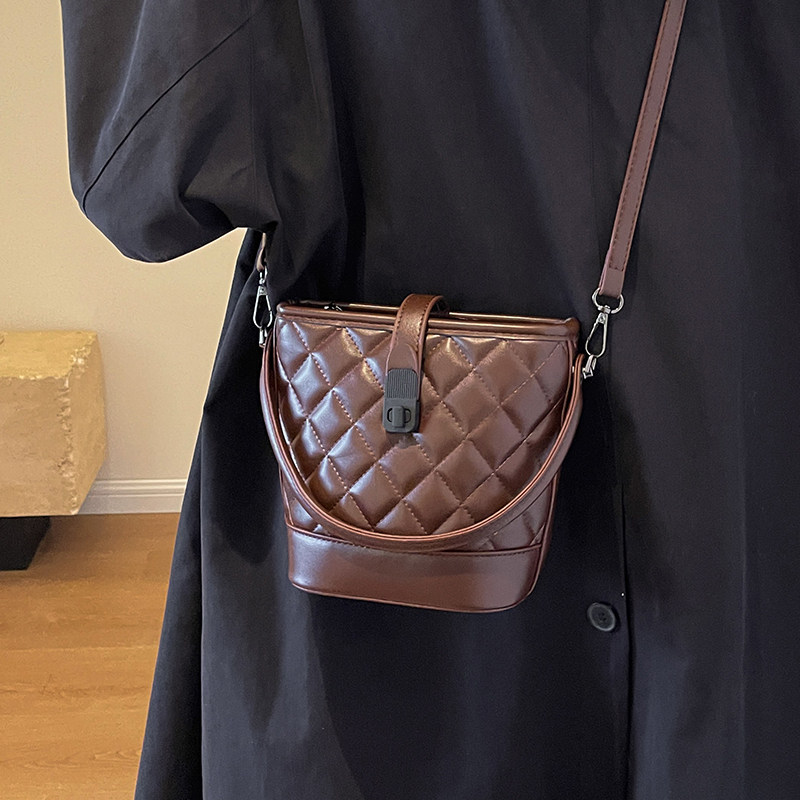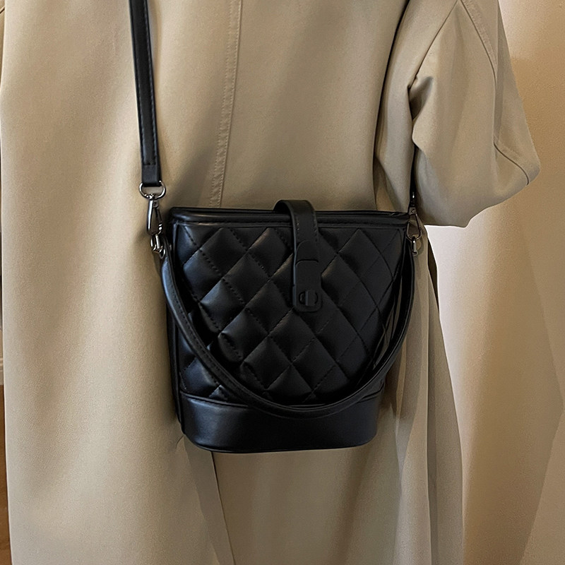 时尚百搭手拎包包女2025新款冬季小香风菱格水桶包高级质感斜挎包