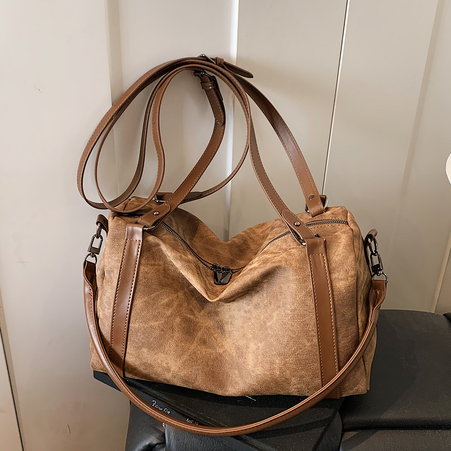 大容量包包女式2025新款高级感复古短途旅行包单肩斜挎波士顿女包