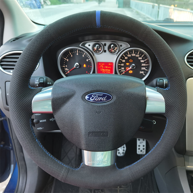 福特经典福克斯新锐界plus蒙迪欧锐际电马专用翻毛皮手缝方向盘套