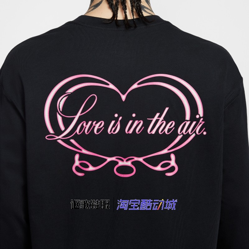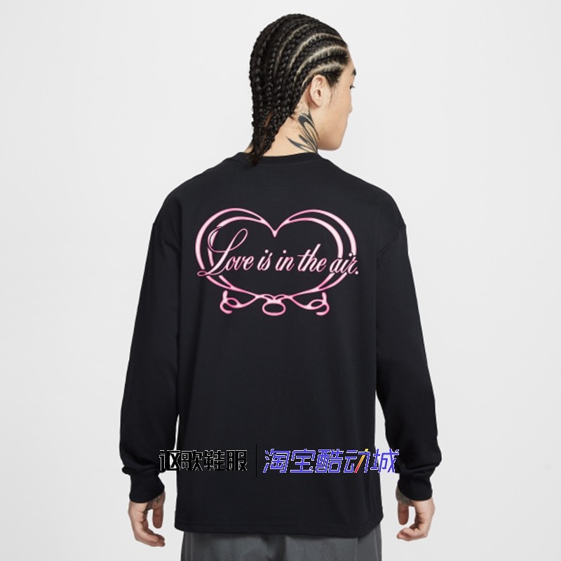 耐克男子新款情人节限定爱心印花纯棉透气休闲长袖T恤IO9761-010