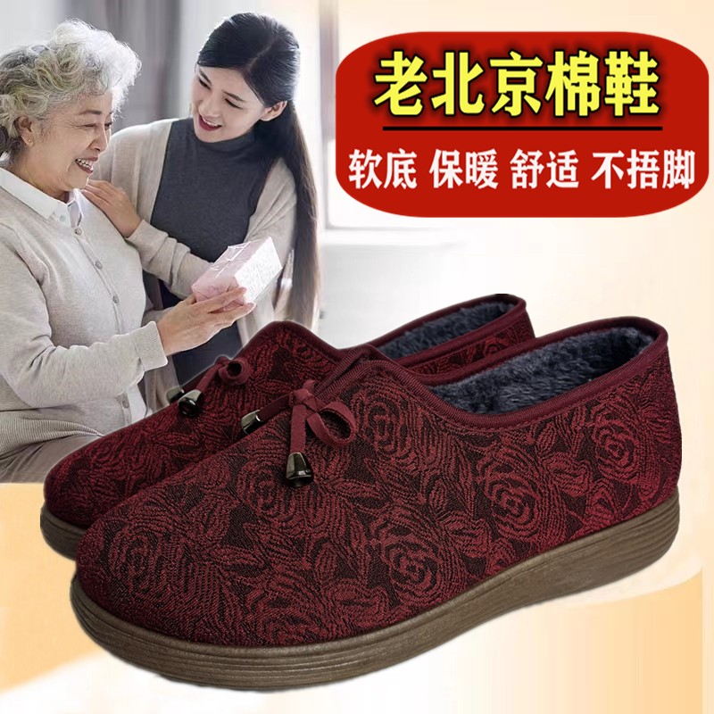 老年人棉鞋女冬加绒保暖妈妈鞋老北京布鞋软底宽松防滑奶奶鞋冬季