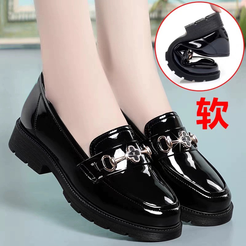 品牌鞋真皮软底小皮鞋女单鞋春季新款百搭乐福鞋英伦黑平底豆豆鞋