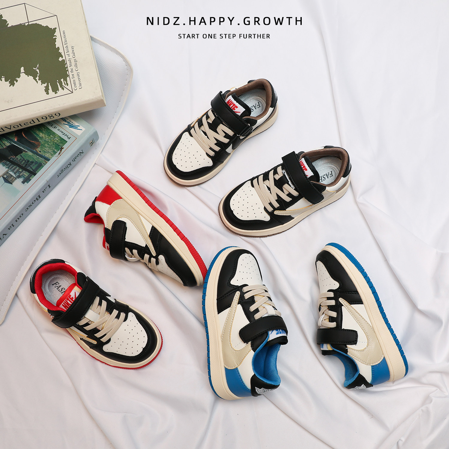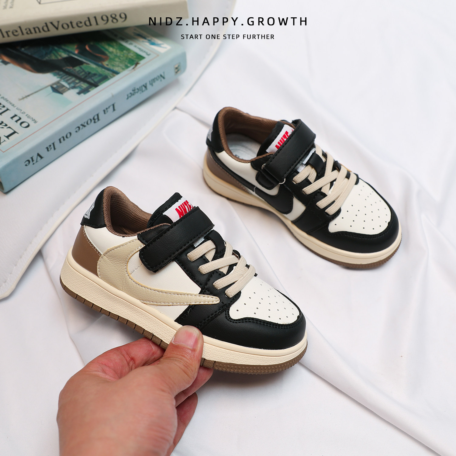 NIDZ儿童防滑倒闪电勾板鞋2025春秋新款男童低帮运动鞋女童休闲鞋