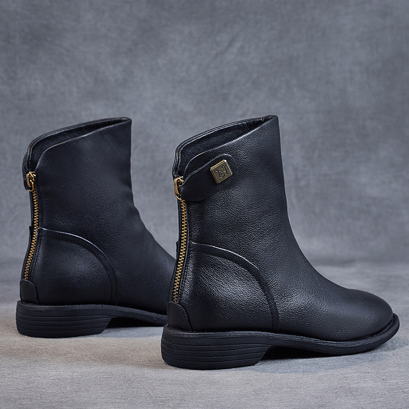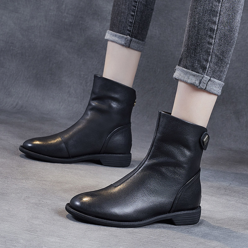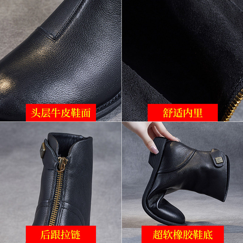 真皮软皮软底舒适低跟平底女士马丁靴女纯皮短靴显瘦女靴子廋廋靴