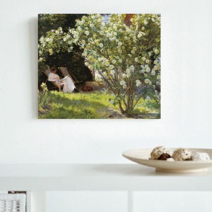 Kroyer 克罗耶 丹麦画家白玫瑰花丛客厅装饰画餐厅卧室挂画无框画