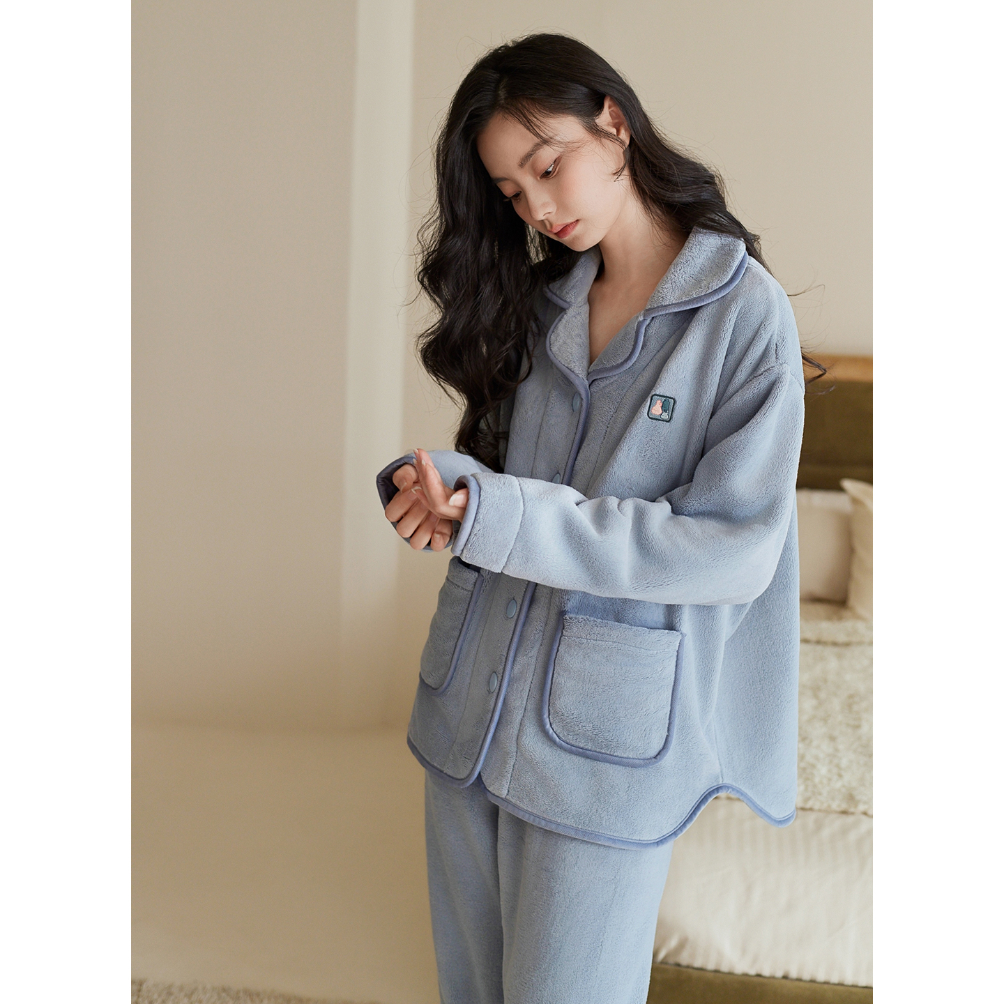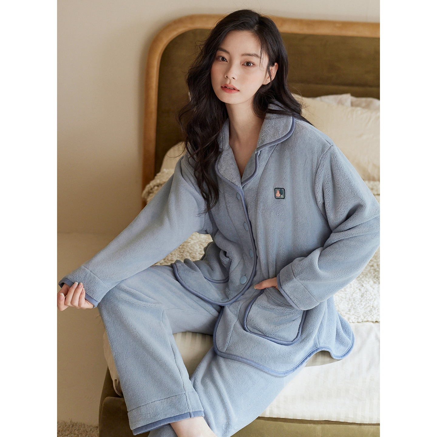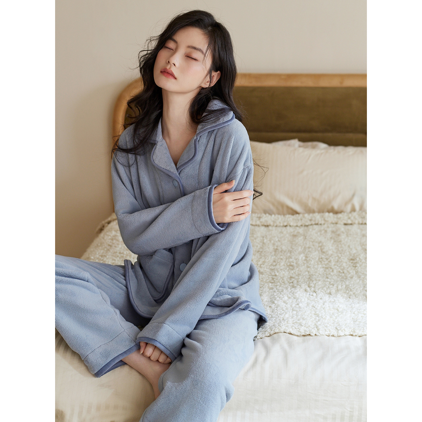 睡衣女冬季珊瑚绒加厚加绒保暖女款秋冬法兰绒大码冬款家居服套装