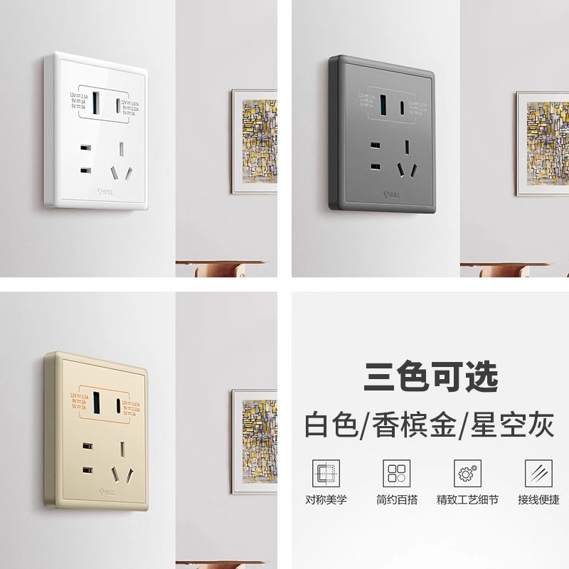 公牛智能typec快充86型带usb接口的开关插座五孔墙壁面板手机充电