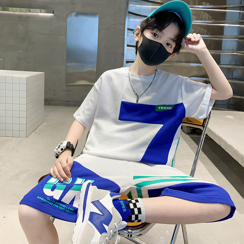 儿童装男童夏季薄款运动服短袖套装2023新款中大童洋气男孩夏装潮