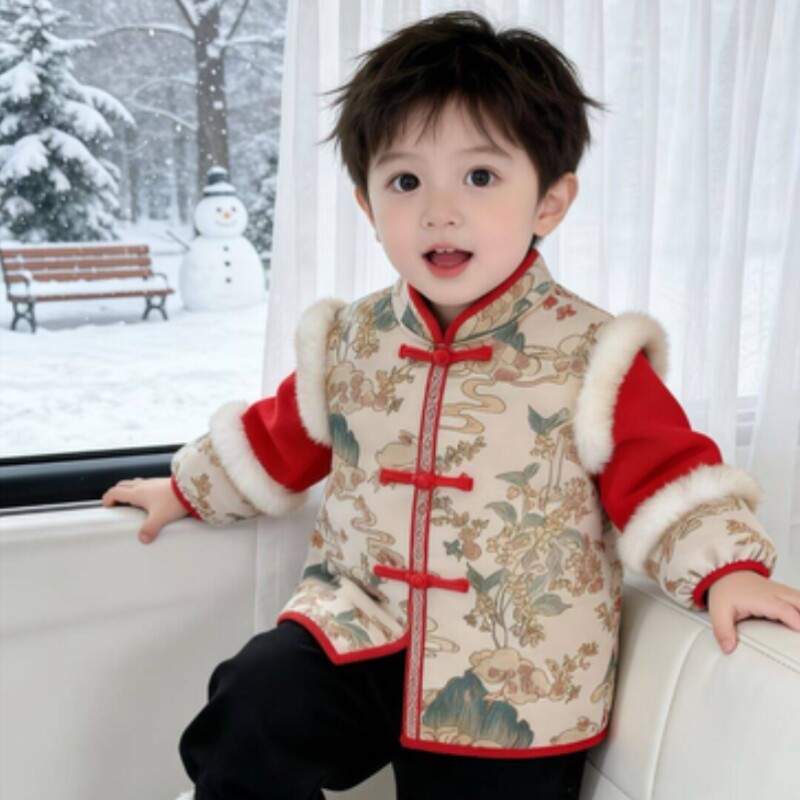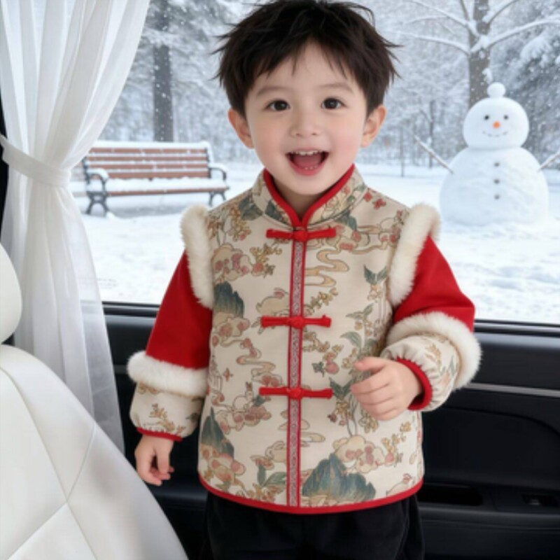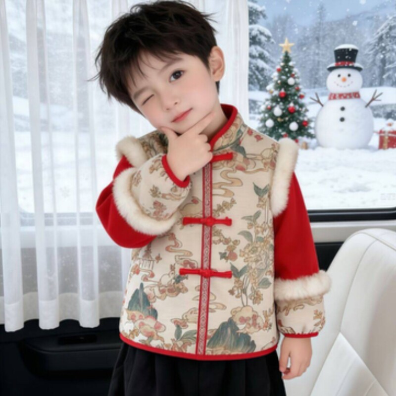 男童罩衣外穿洋气儿童新年拜年服秋冬围裙防水防脏饭兜反穿衣宝宝