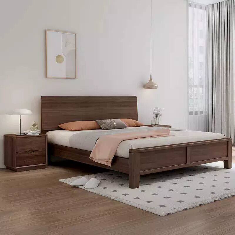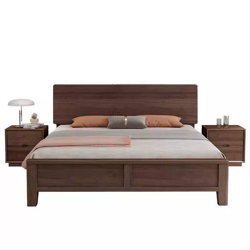 全友家居官网黑胡桃木全实木床1.8米双人床现代简约1.5米大床储物