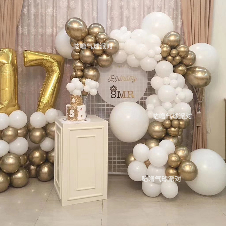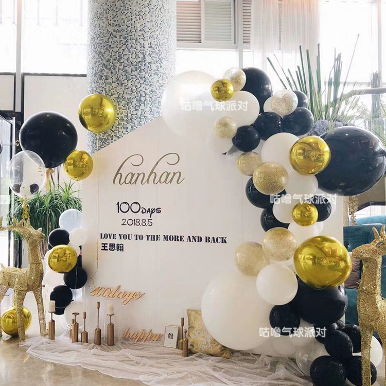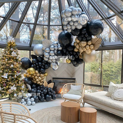 ins风黑白金银色系气球链装饰宴会生日派对开业户外背景客厅布置