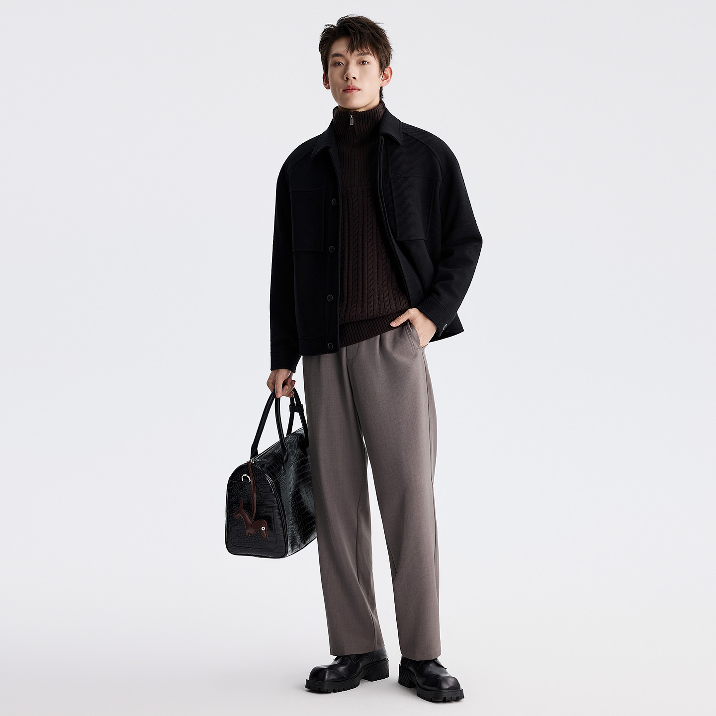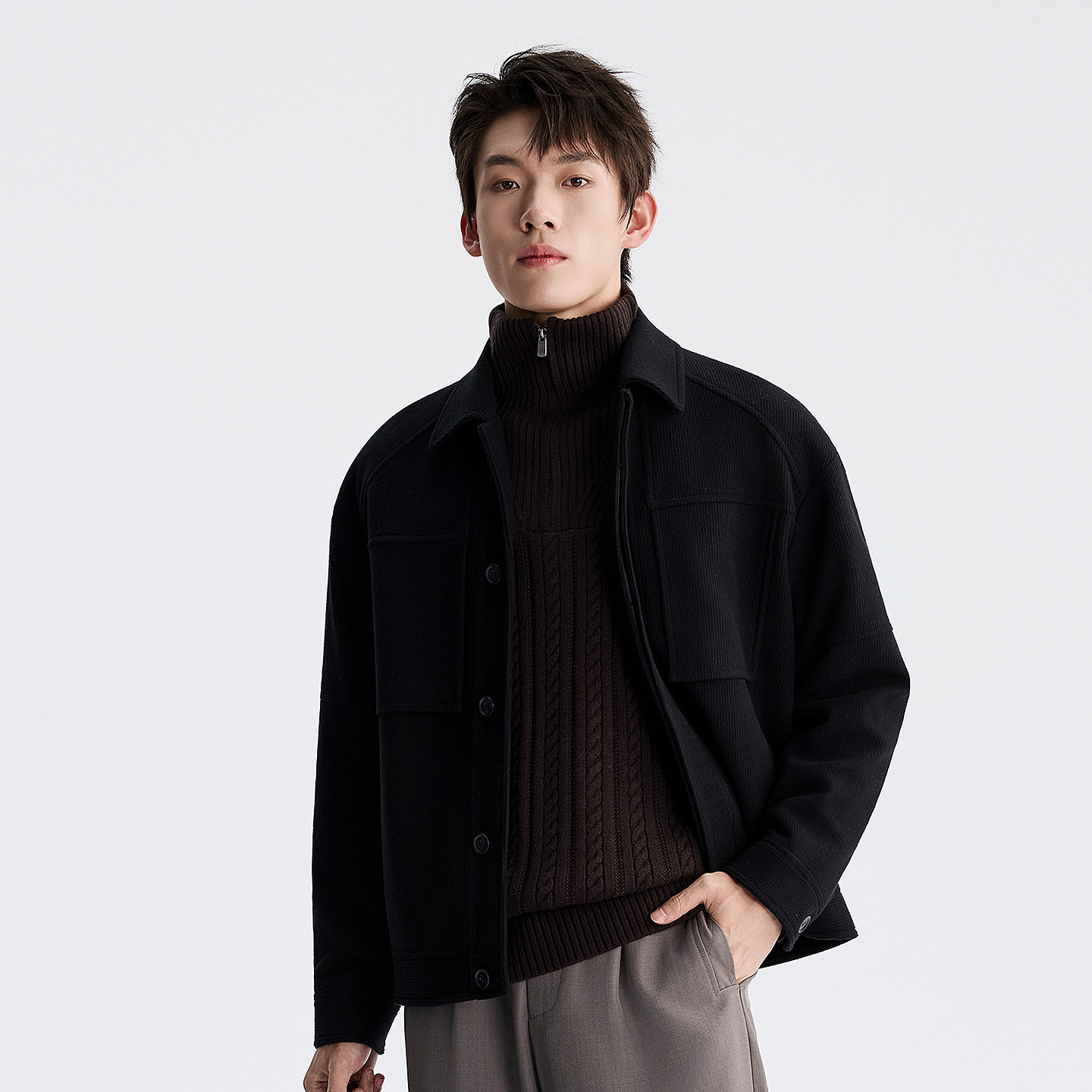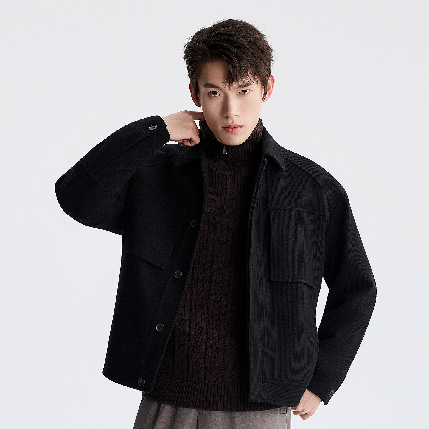 【条纹肌理】利郎青年商务毛呢外套2025冬季时尚百搭休闲保暖大衣