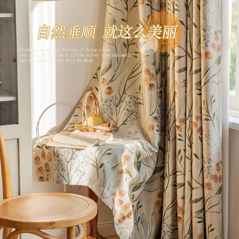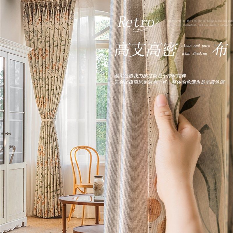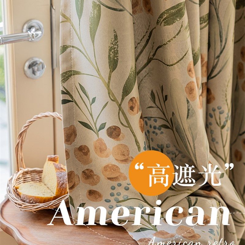 卧室窗帘挂钩式田园风2021年新款客厅美式全遮光布飘窗儿童房女gr