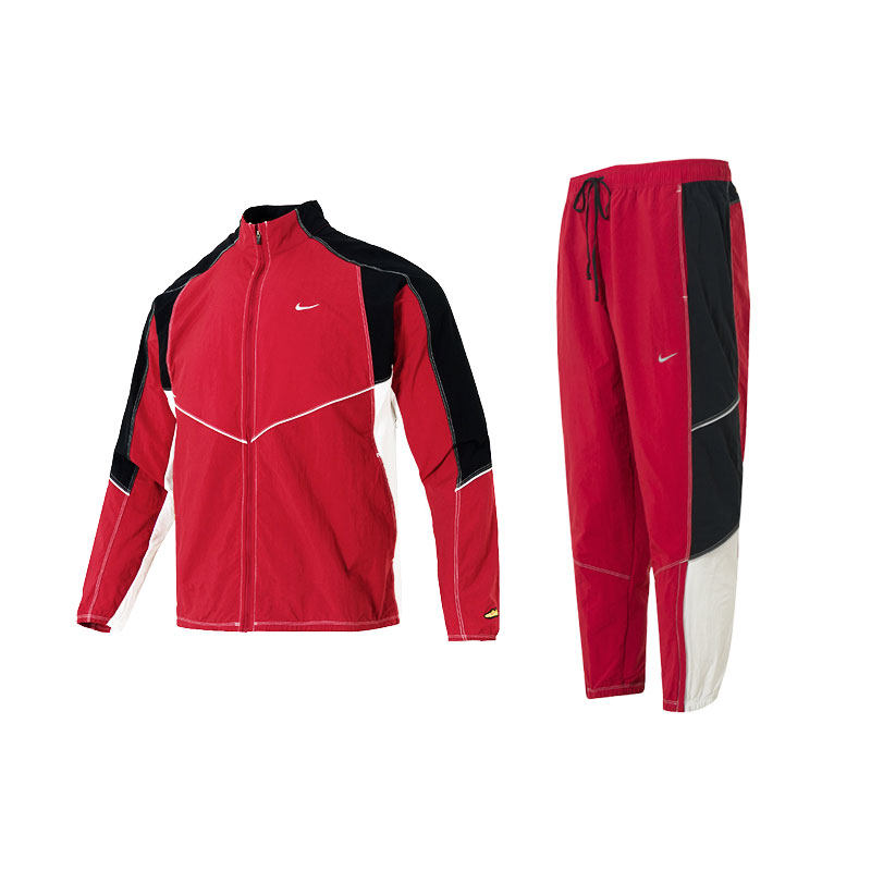NIKE耐克梭织套装男装2026春新款深红拼接休闲梭织夹克长裤两件套