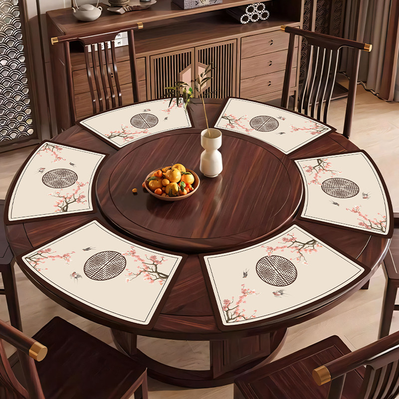 新中式圆桌扇形餐垫高级感酒店专用餐垫商用防水防烫隔热弧形桌垫