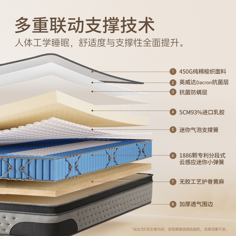 铂马仕宛月乳胶弹簧床垫席梦思酒店软垫1.8m米记忆棉护脊黄麻硬垫