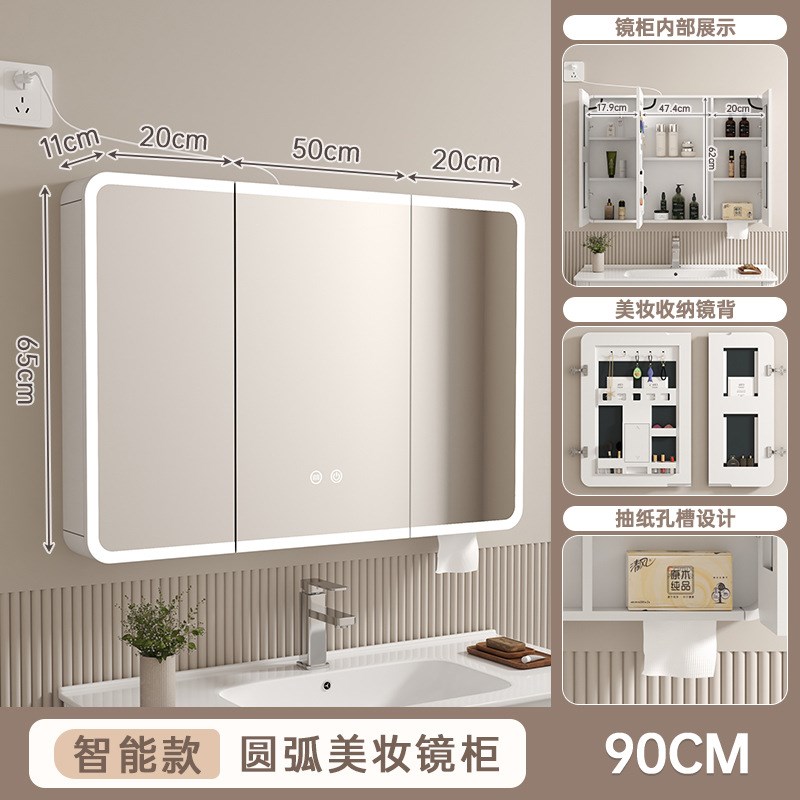 2024铝浴室智能镜柜单独卫生间挂墙式除雾带灯收纳一体置物架镜子