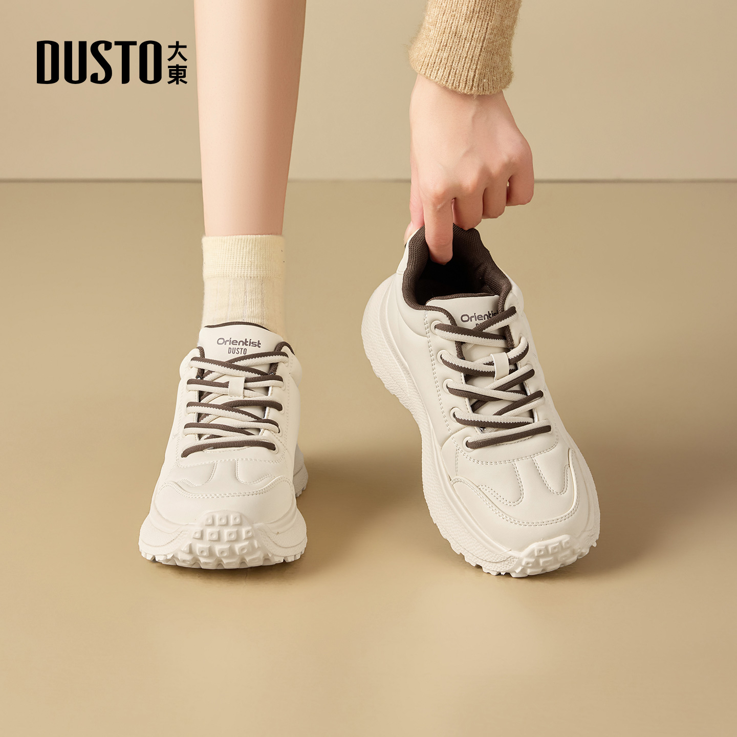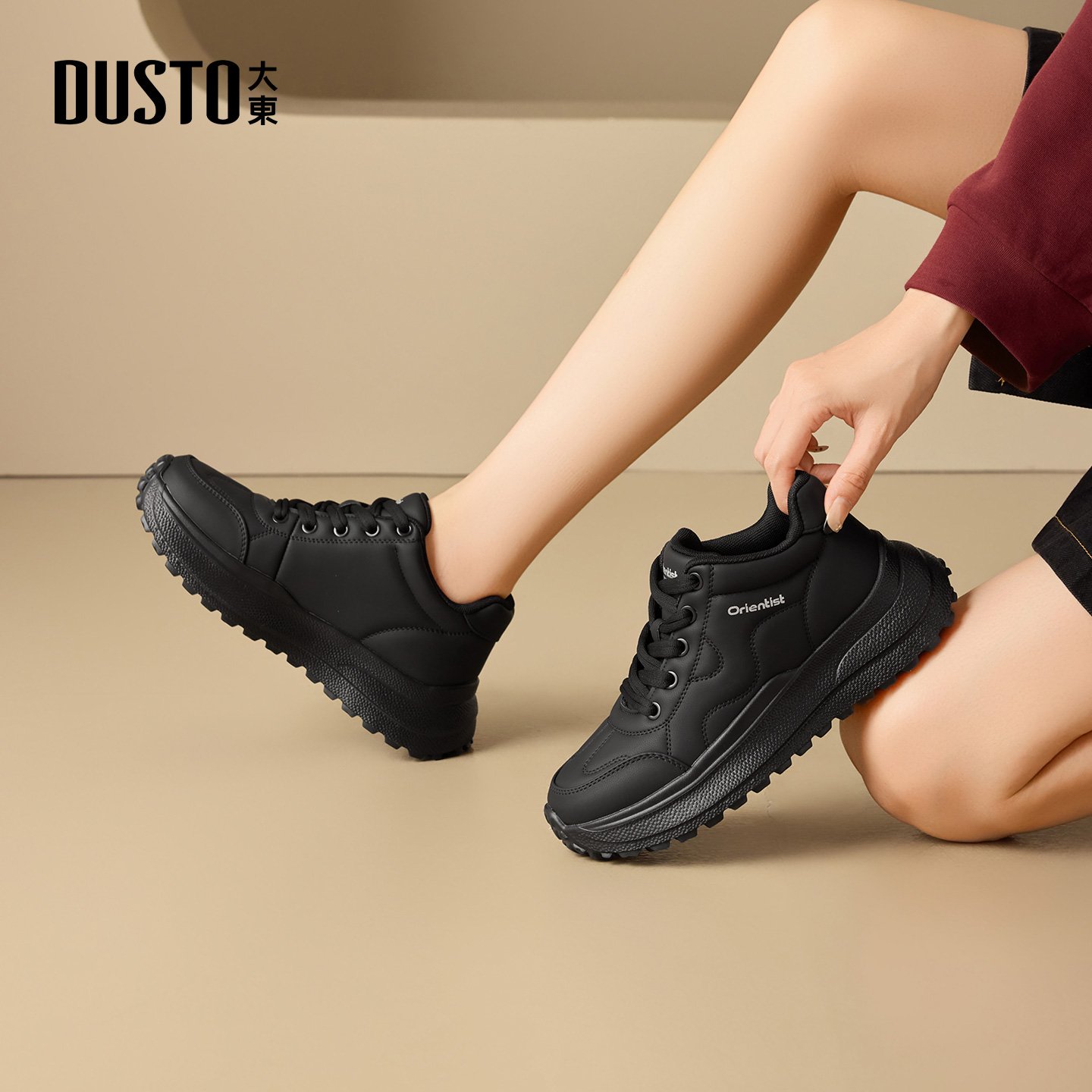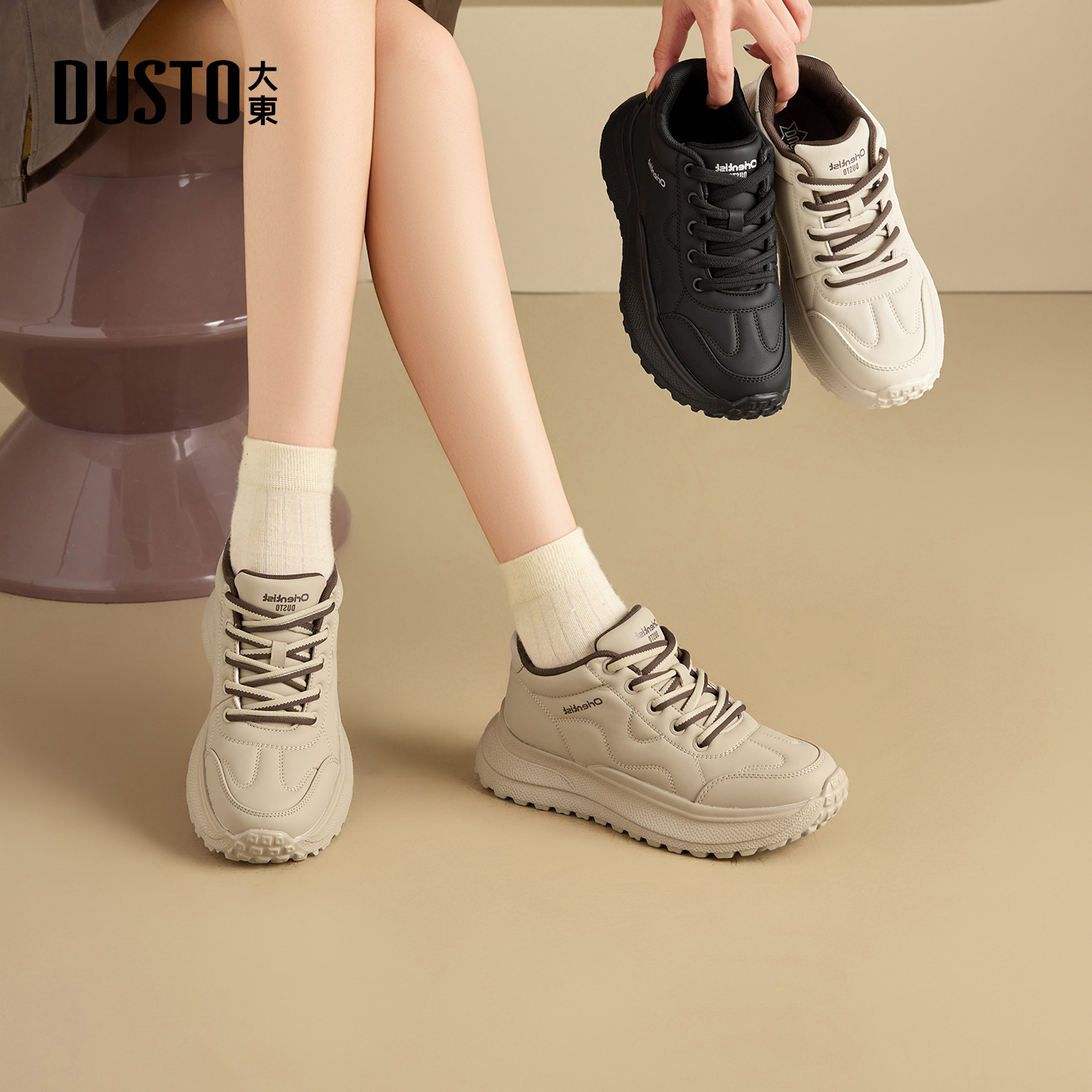 大东女鞋休闲鞋2025冬季新款时尚厚底加绒运动鞋系带圆头保暖棉鞋