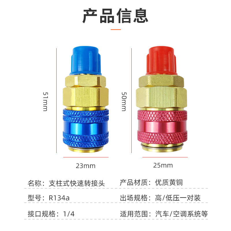 纯铜转换接头汽车雪种快速接头冷媒制冷空调R134A加氟利昂工具