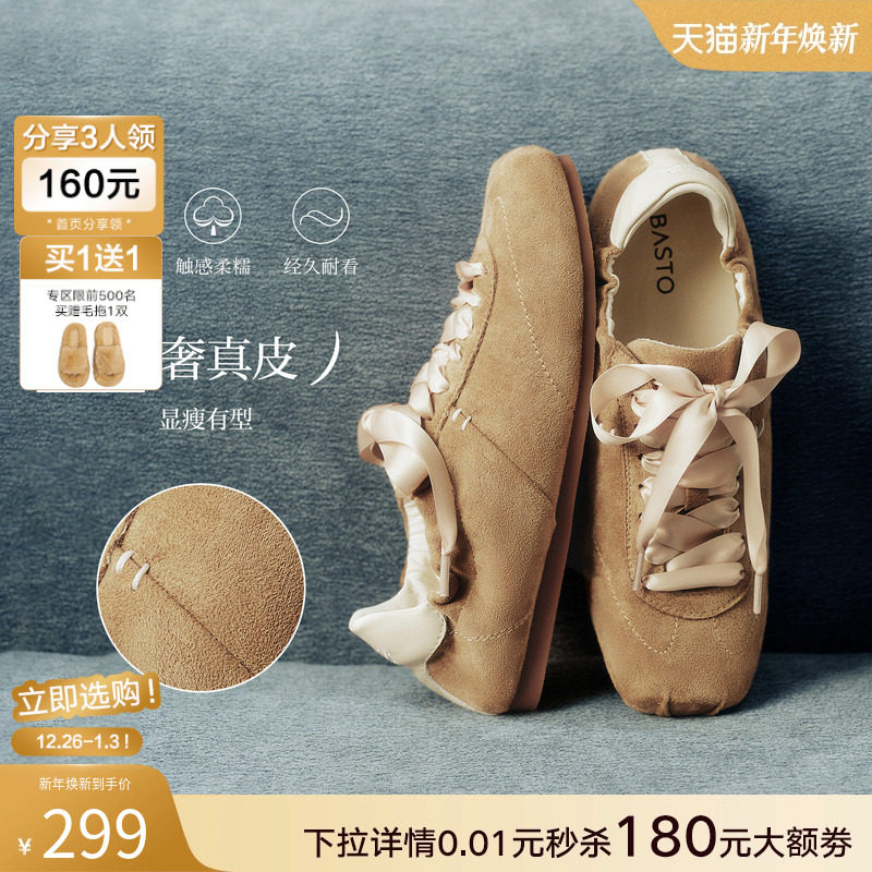 【芭蕾缪斯】百思图26春新款薄底芭蕾德训鞋运动休闲女鞋UZQ02AM6
