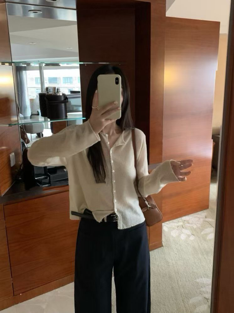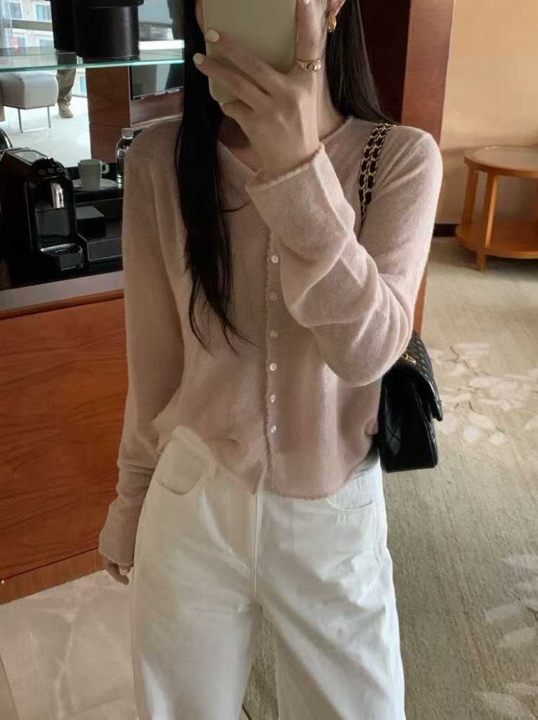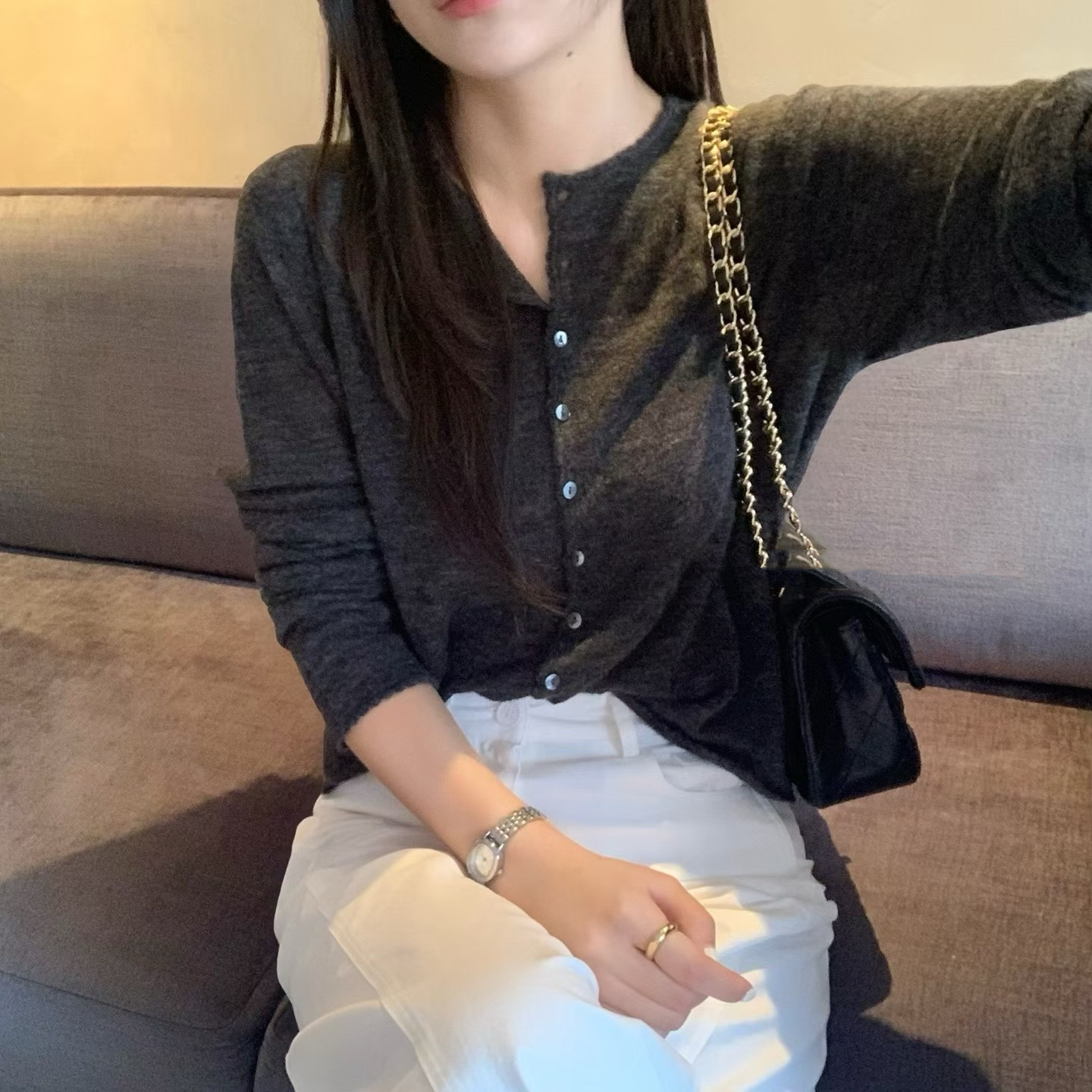 韩国东大门正品女装2025新款百搭金丝圆领单排扣纯色针织开衫上衣