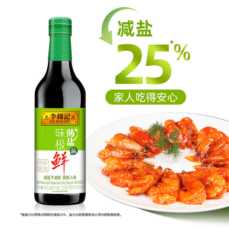 李锦记薄盐味极鲜特级酱油减盐酱油调味品凉拌生抽调料500ml