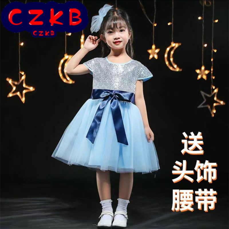 女童现代舞表演服装儿童演出服公主蓬蓬裙六一儿童合唱演出服亮片