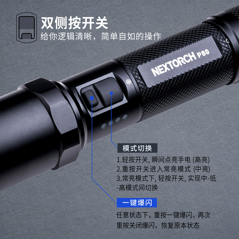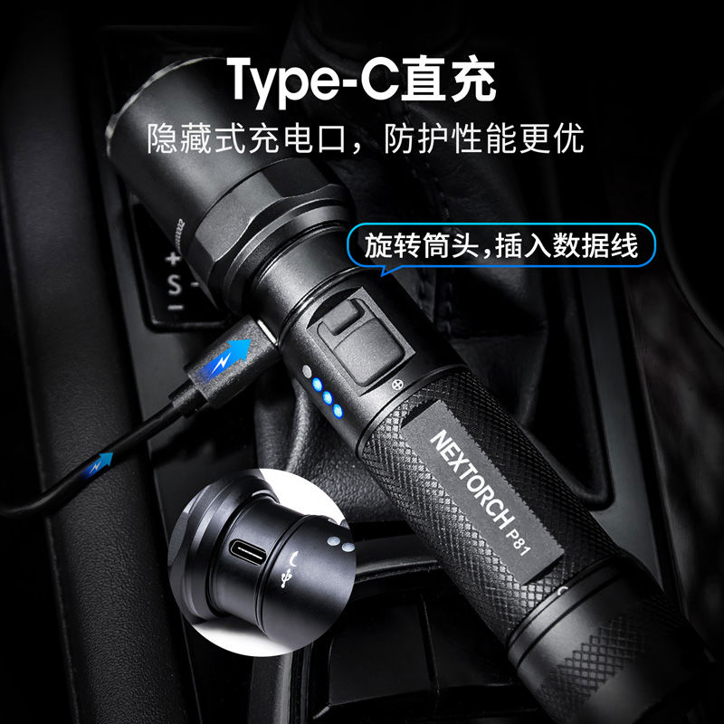 纳丽德P81强光手电筒战术户外超亮远射可充电21700电池家用专用