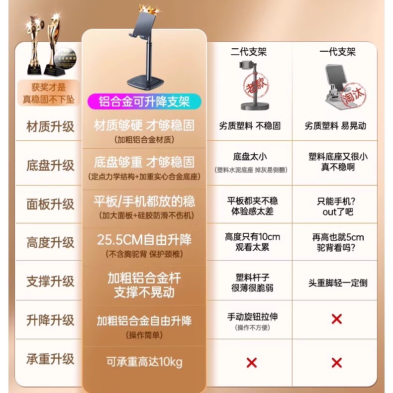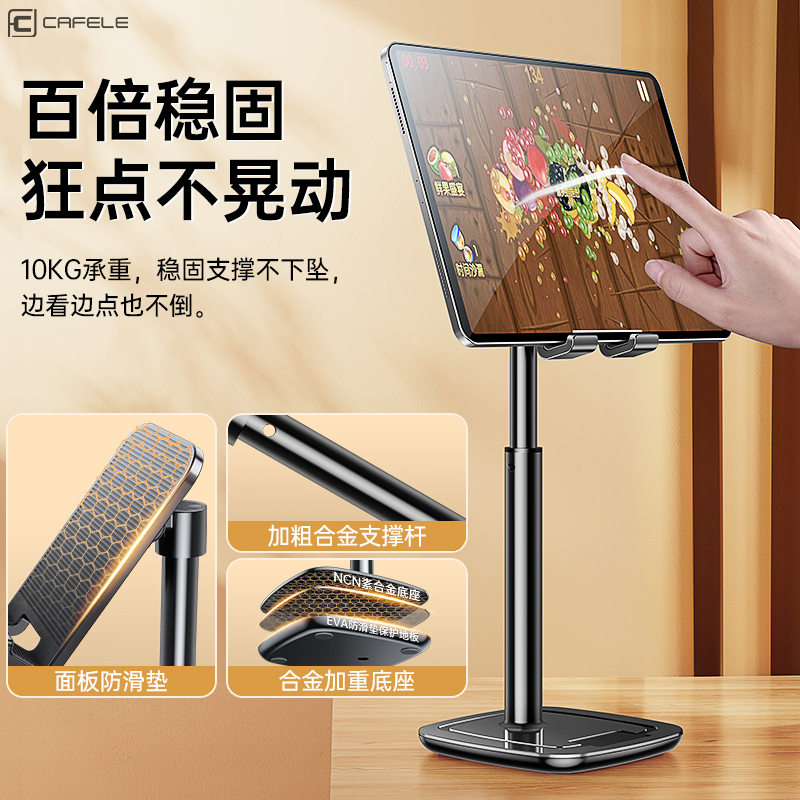 卡斐乐手机支架桌面ipad平板电脑万能通用底座加重可升降伸缩调节上网课神器懒人专用铝合金架子高稳固支撑架