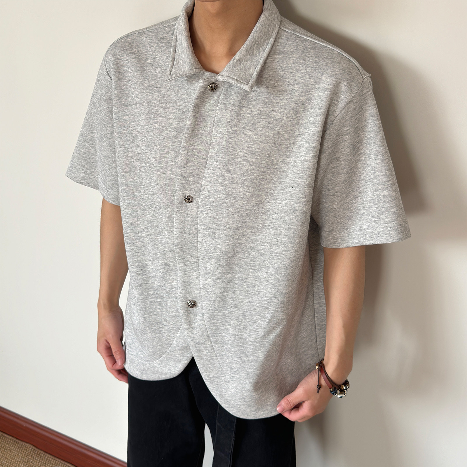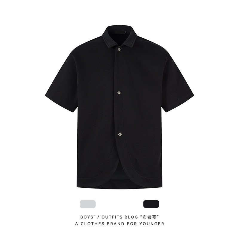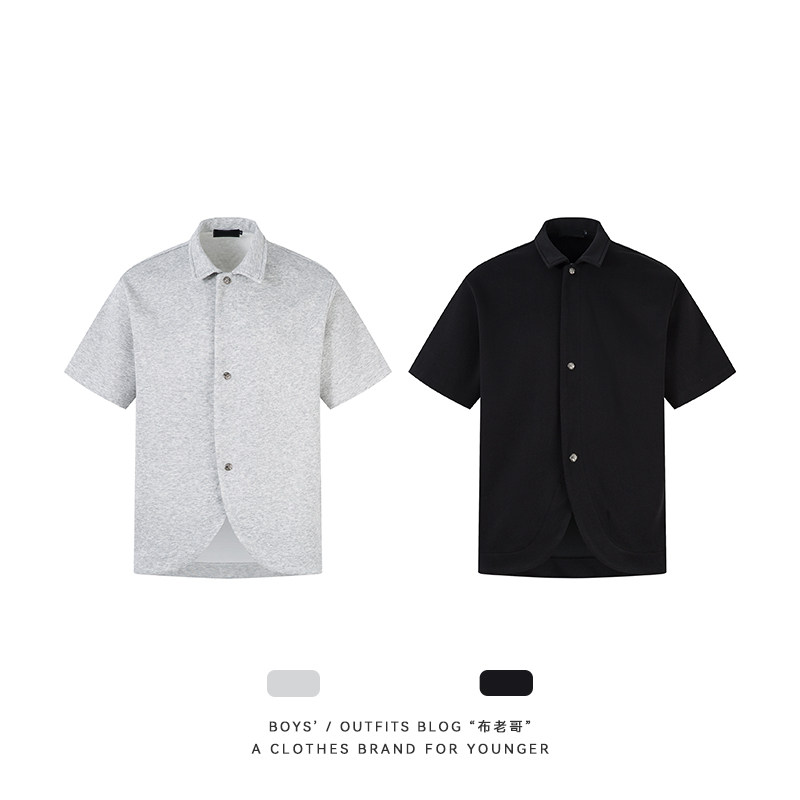 布老哥Blog夏季太空棉花瓣短袖衬衫cleanfit宽松显高软糯T恤D197
