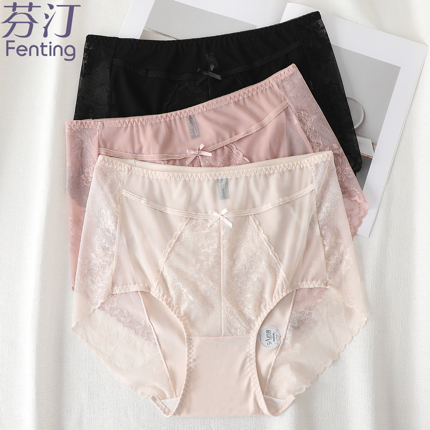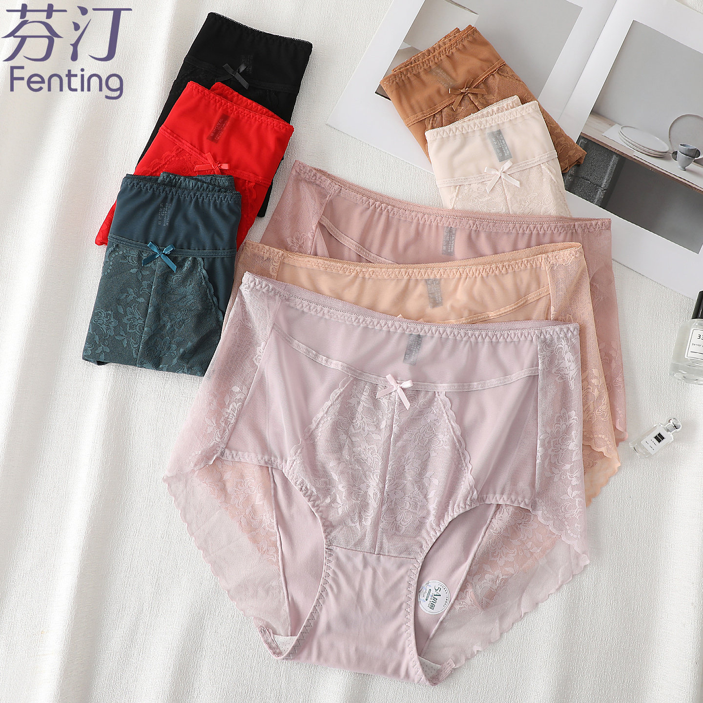 芬汀胖MM内裤女薄款大码夏蕾丝网纱高腰200斤加大加肥三角内裤红