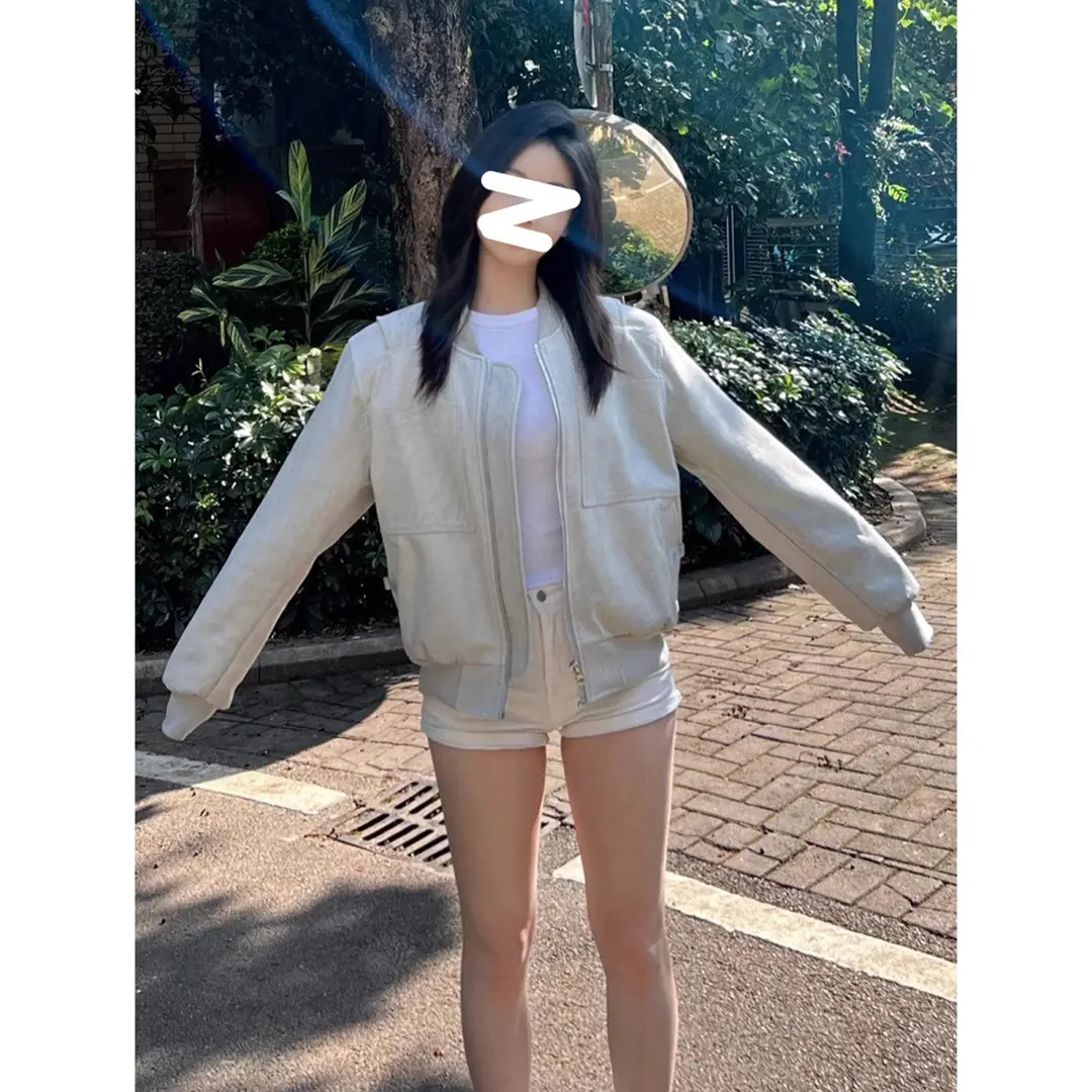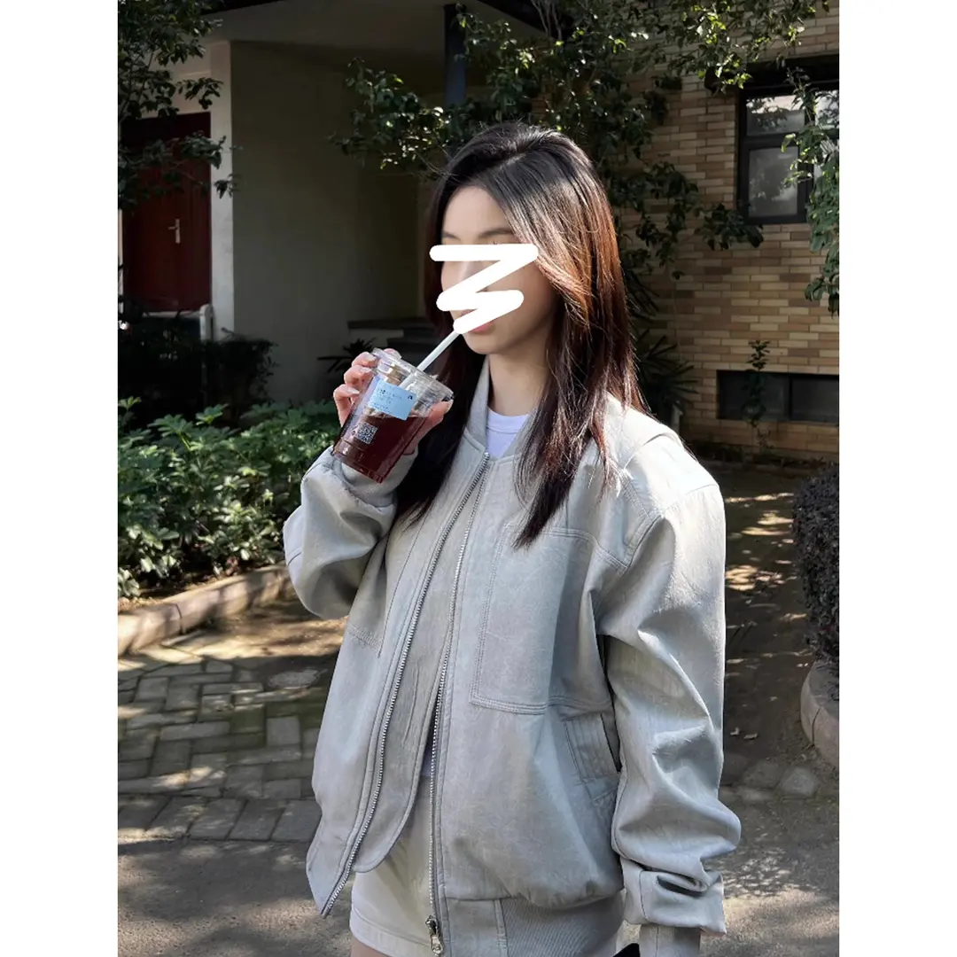 美式复古石灰短款棒球服外套女春秋新款cleanfit国潮工装飞行夹克