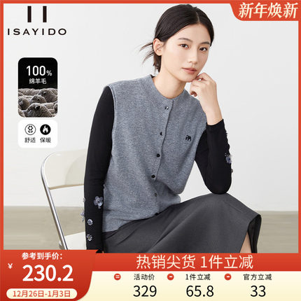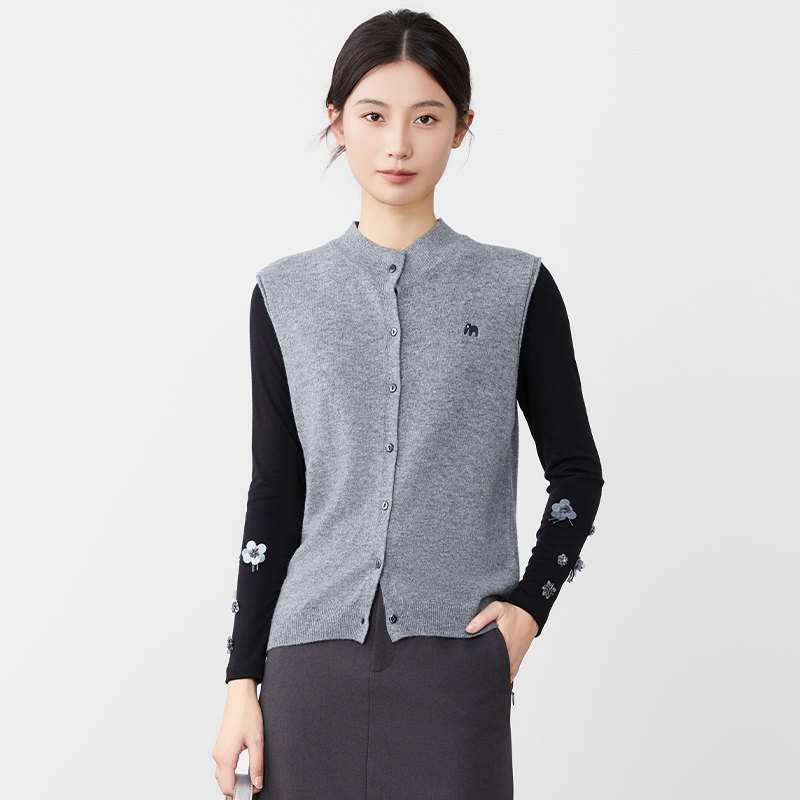 傲丝度绵羊毛针织衫女2026春新款无袖毛衣马甲小个子外搭坎肩上衣