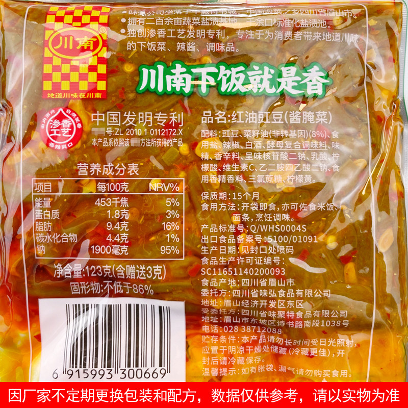 川南红油豇豆123g四川泡菜下饭菜大包装自制酸豆角脆豇豆大袋缸豆