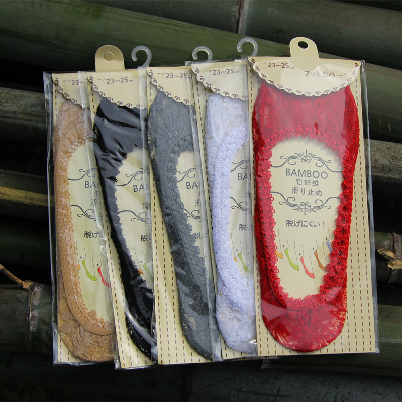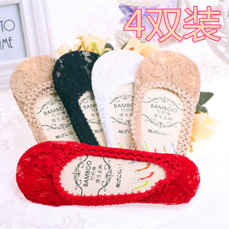 4双蕾丝结婚红色超薄防滑船袜