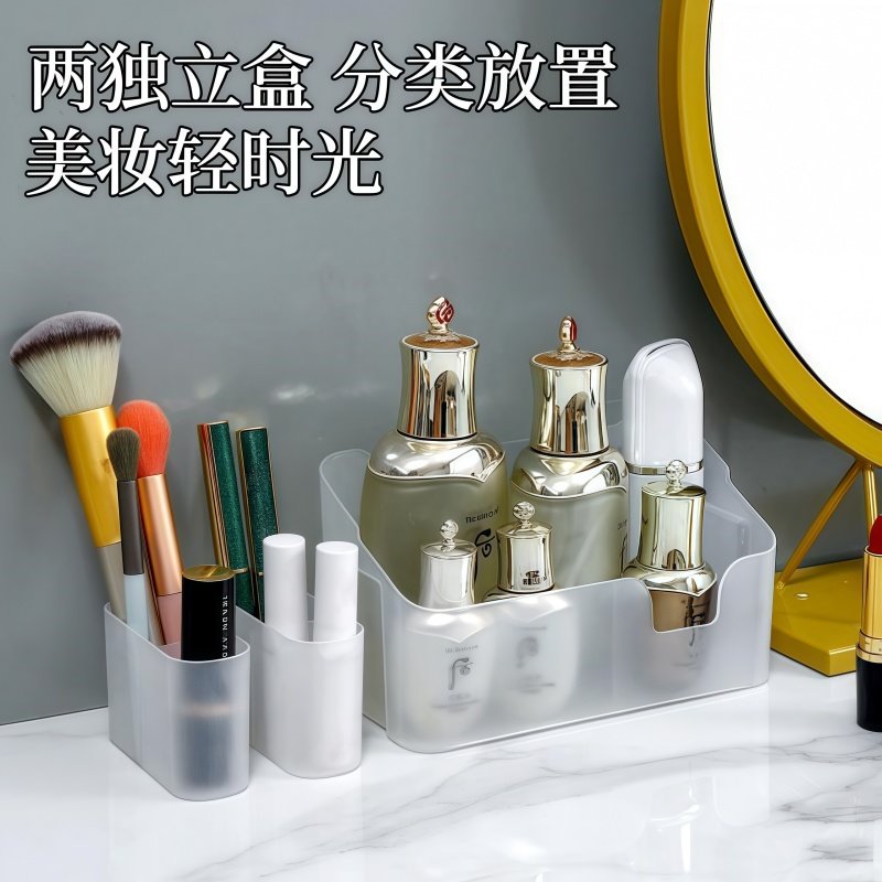 日本镜柜化妆品收纳盒简约桌面神器家用梳妆护肤品置物架香水整理