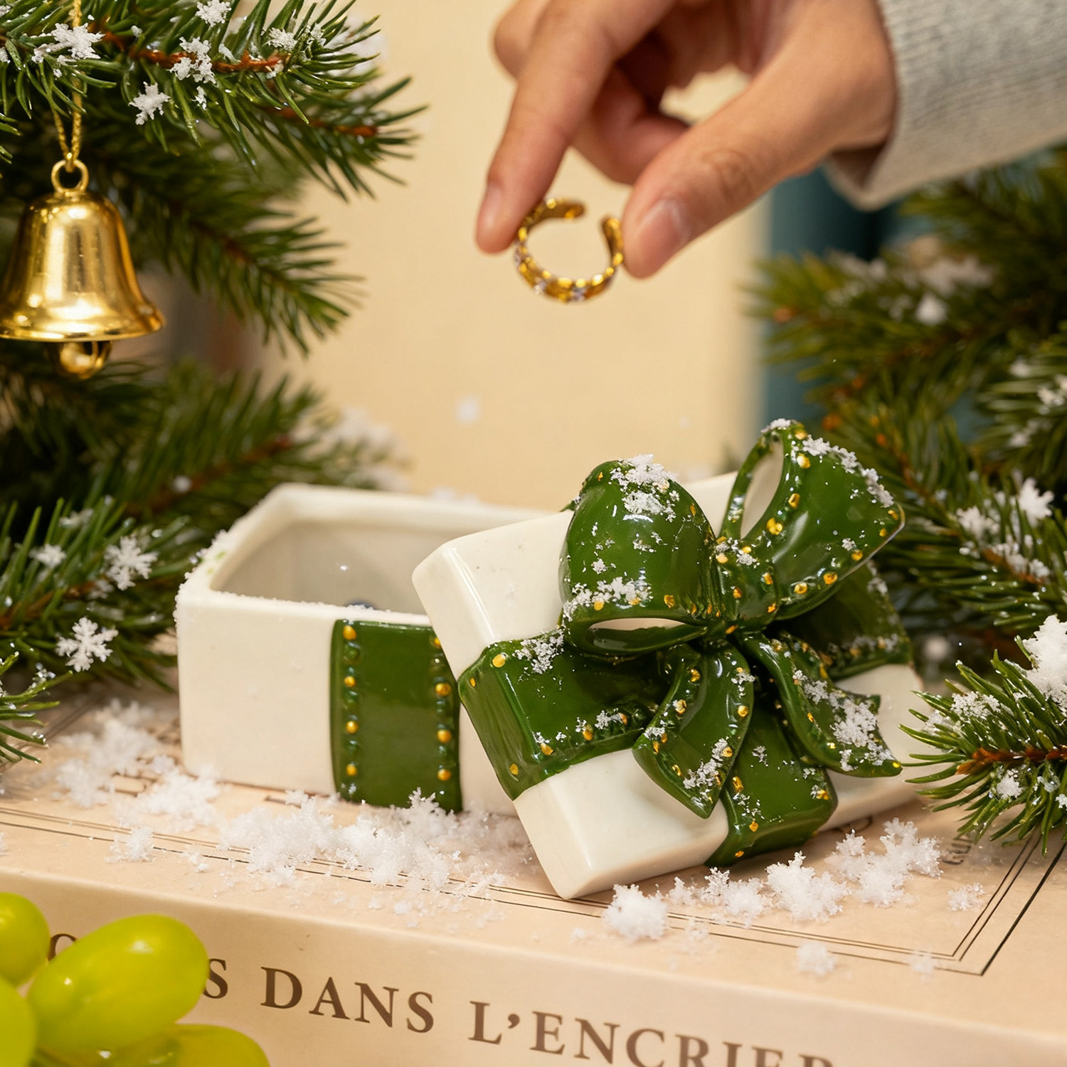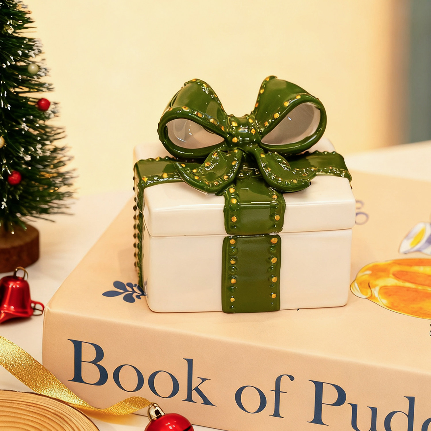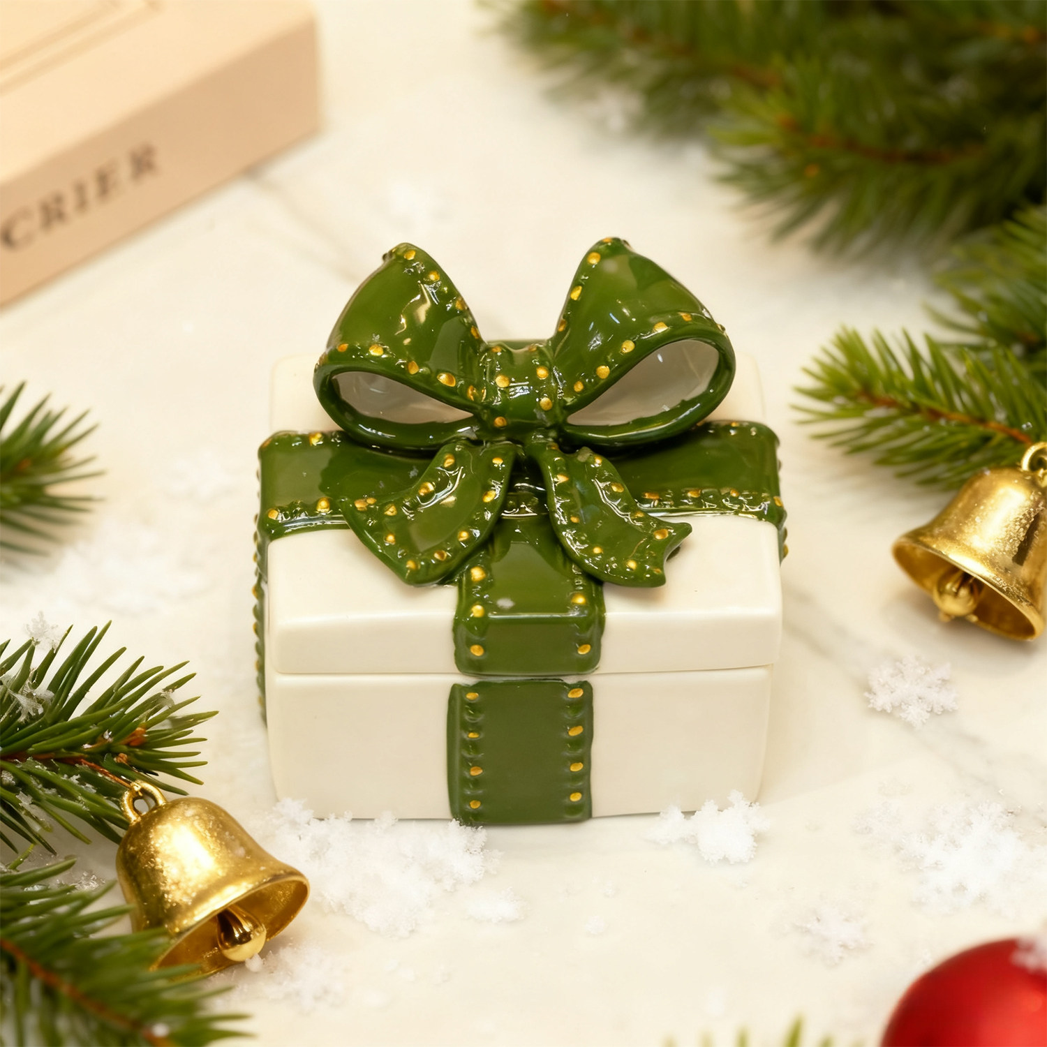 创意陶瓷圣诞蝴蝶结首饰盒个性家居珠宝戒指项链收纳盒饰品盒送礼