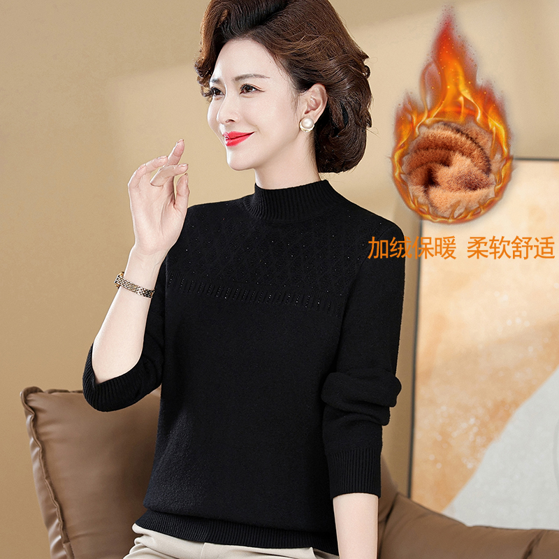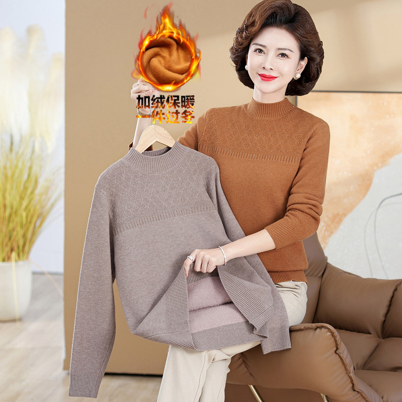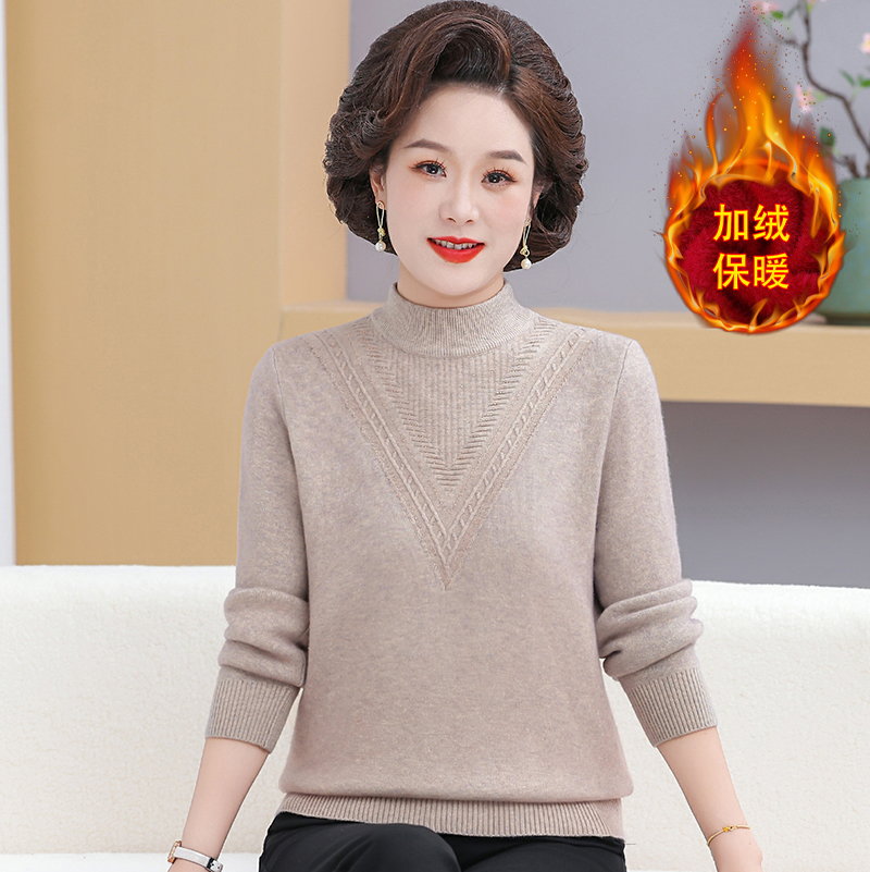 妈妈秋冬装一体绒毛衣女内搭保暖上衣中老年人加绒加厚打底衫毛衣