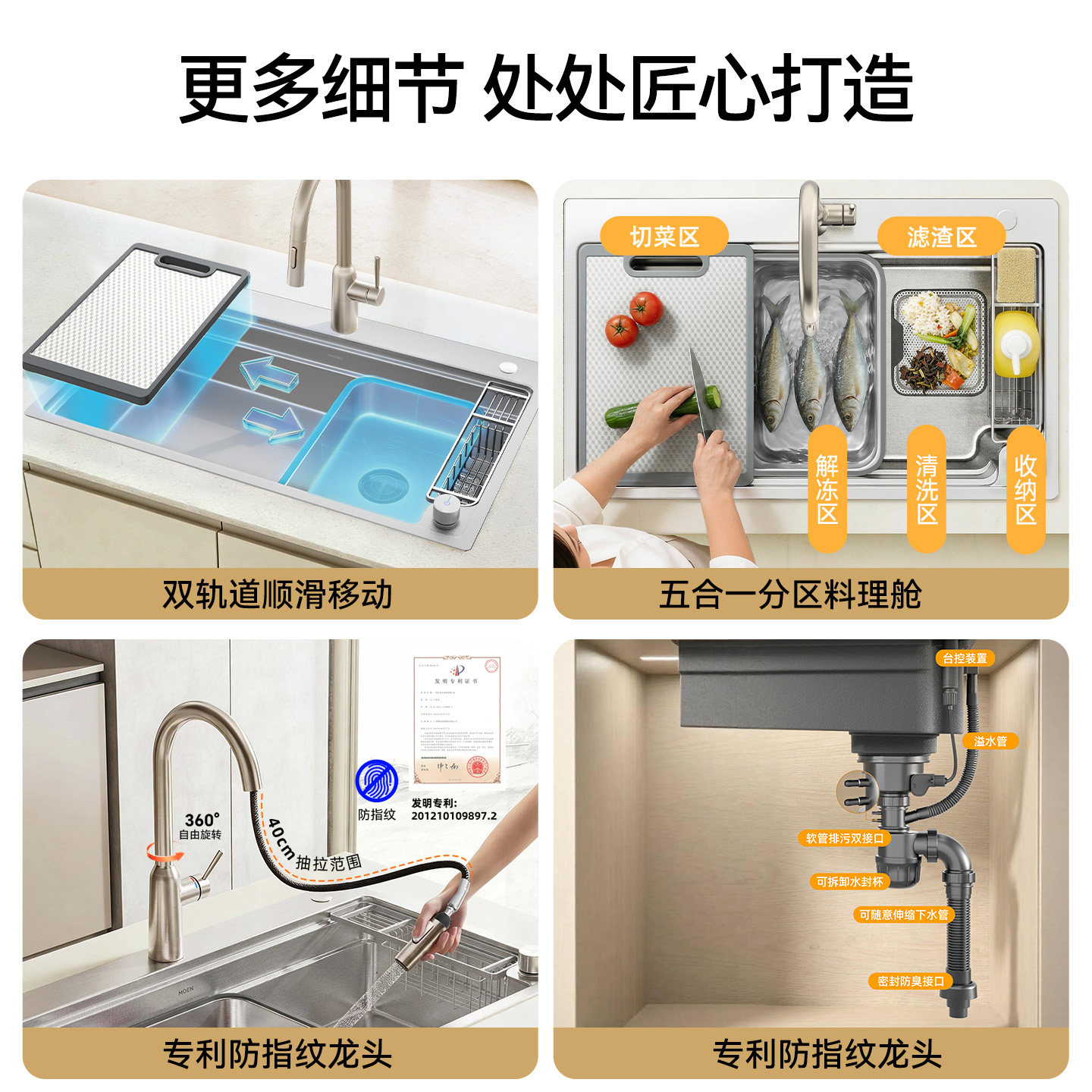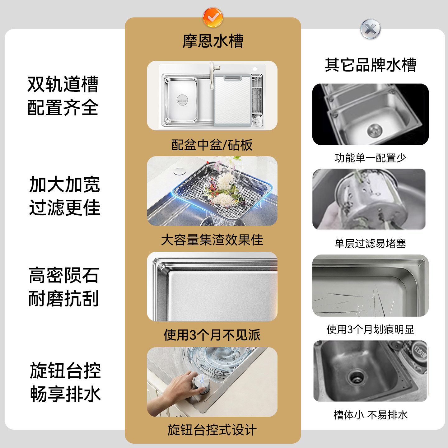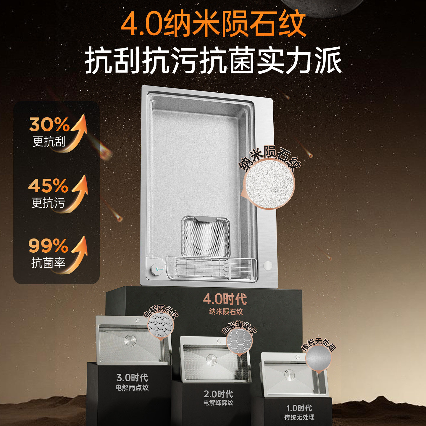 摩恩官方厨房纳米水槽不锈钢大单槽集滤渣洗菜盆家用洗碗槽收纳槽