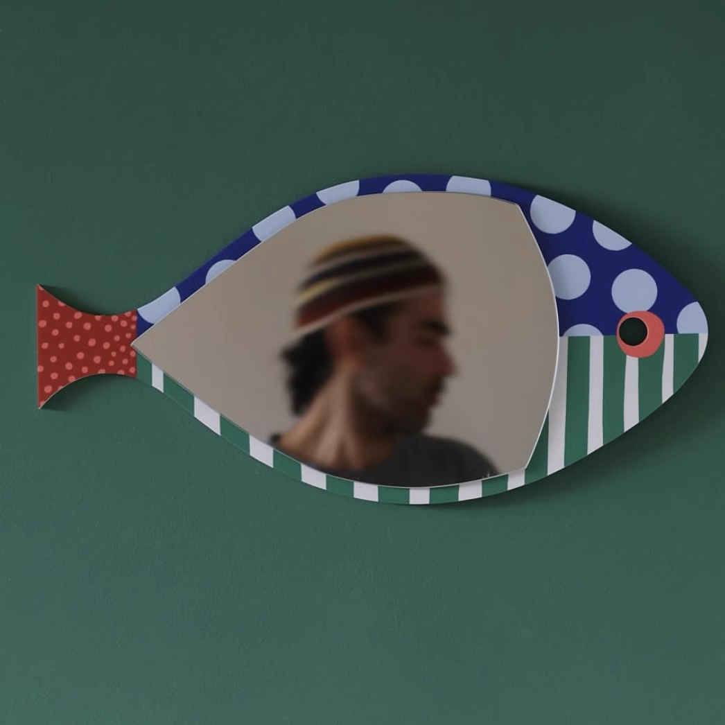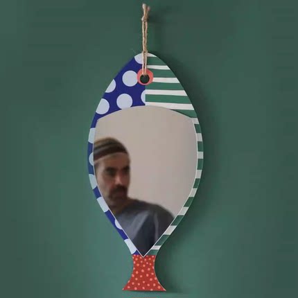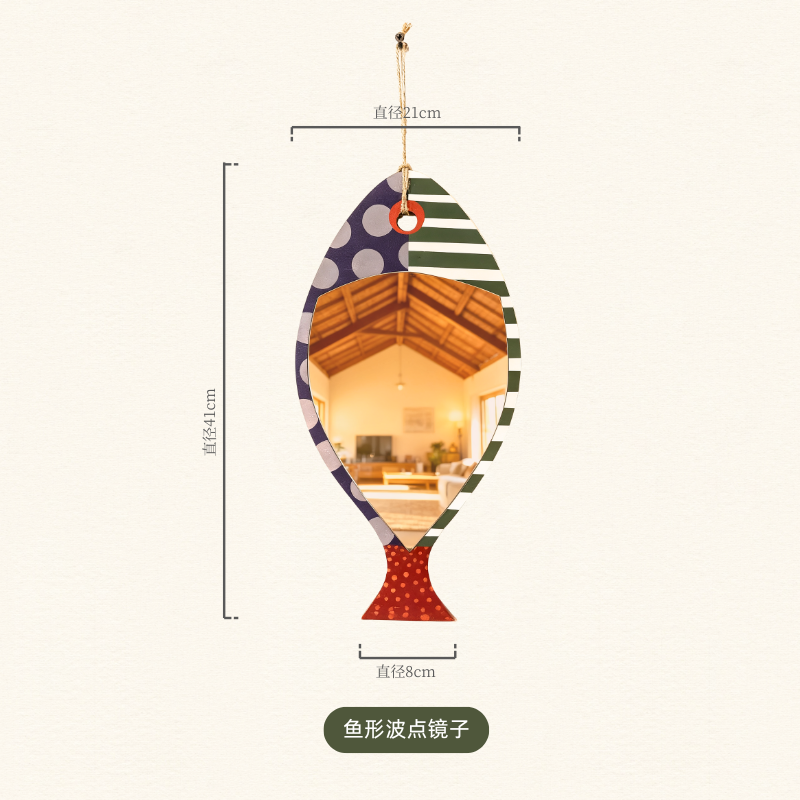 小众设计创意波点线条鱼型化妆镜创意装饰镜壁挂式镜子异形镜