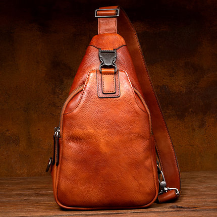 慢时光复古潮手工真皮胸包休闲斜挎包头层植鞣牛皮单肩包男女通用