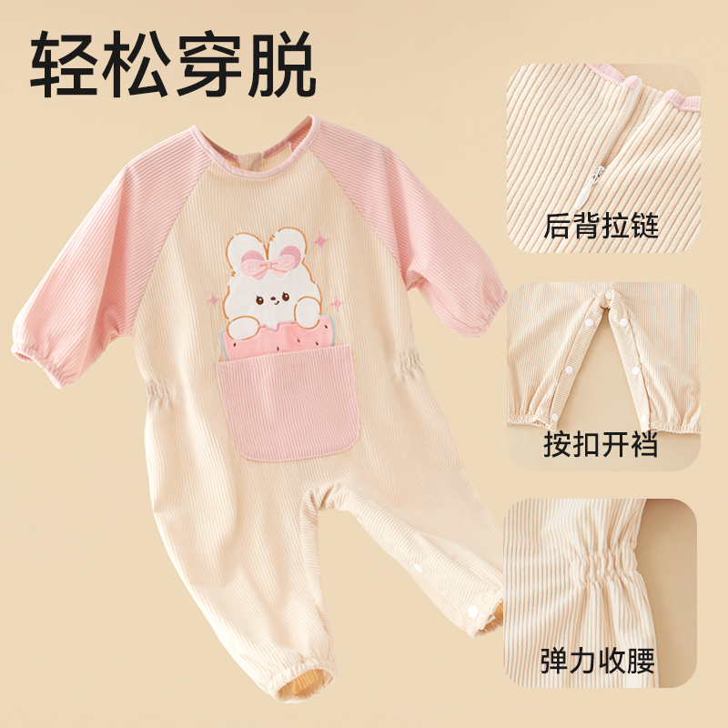 宝宝罩衣秋冬季儿童吃饭围兜防水防脏连体反穿衣女孩外穿婴儿围裙