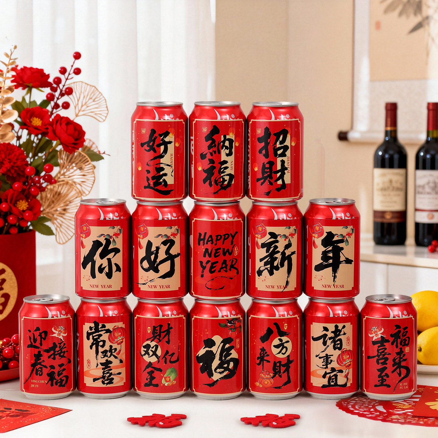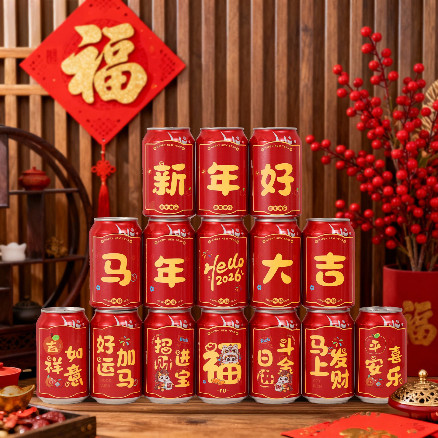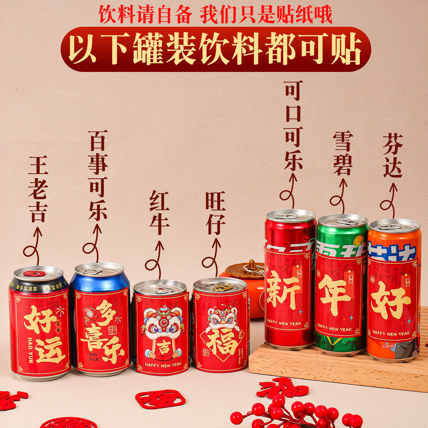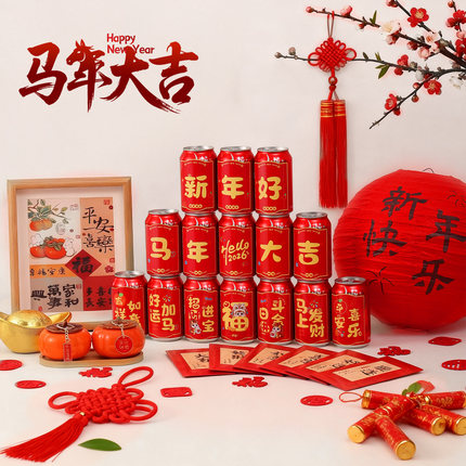 2026新年可乐贴纸马年饮料家里装饰元旦旺仔氛围布置春节过年用品