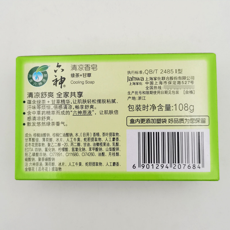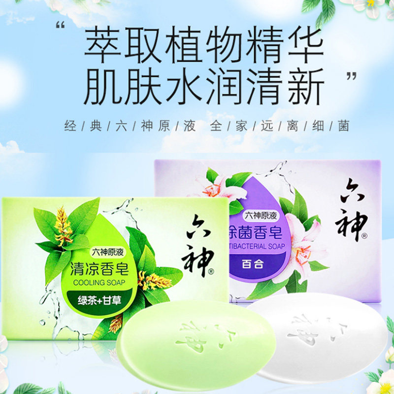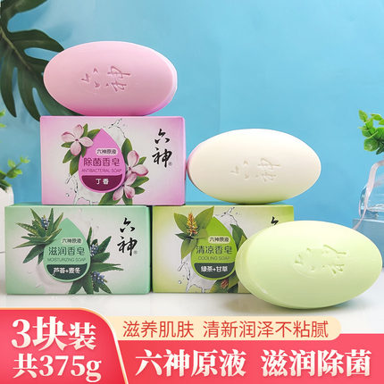 六神香皂家庭实惠3块绿茶清凉除菌芦荟清爽原液洗澡专用沐浴肥皂