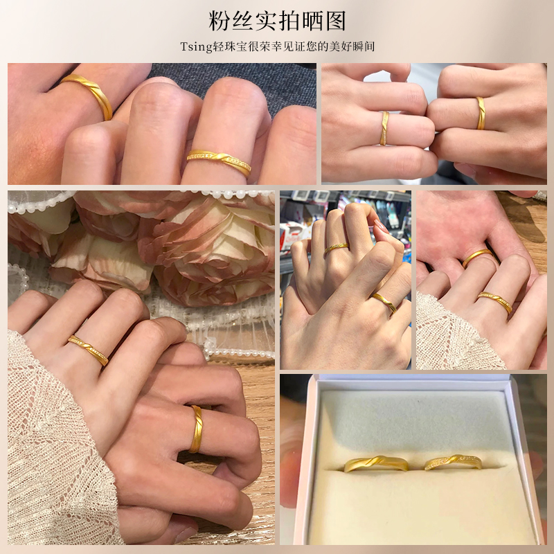 TSING轻珠宝【永恒结】999足金培育钻黄金对戒情侣结婚礼物可刻字