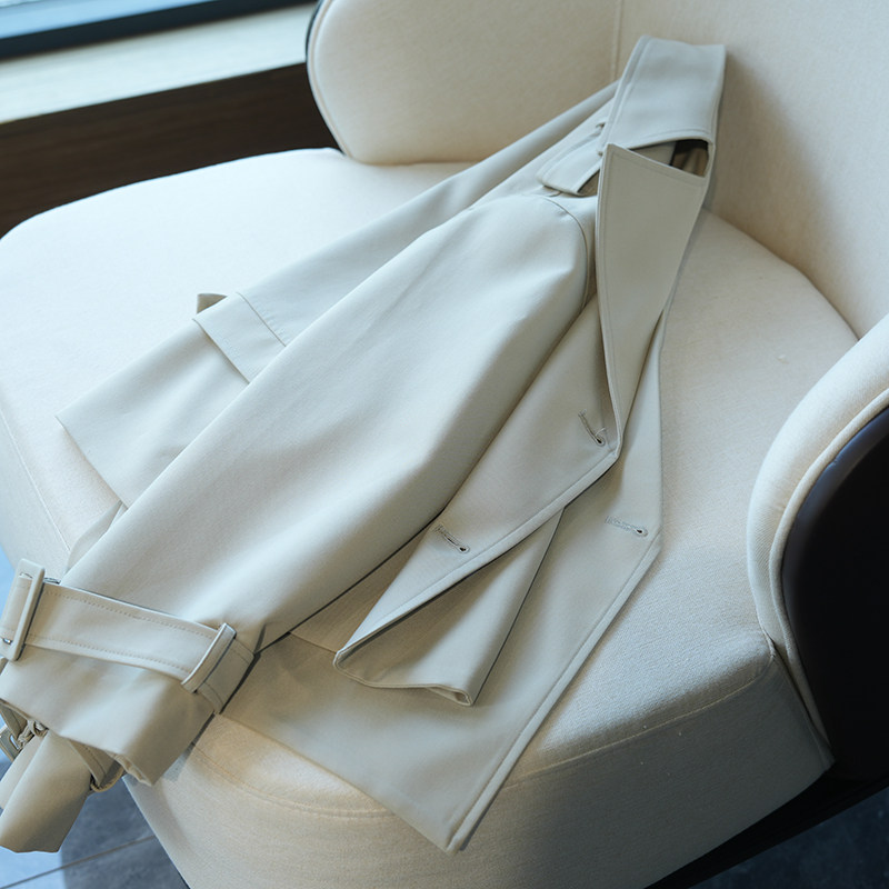 虫小小翻折领短款通勤风衣