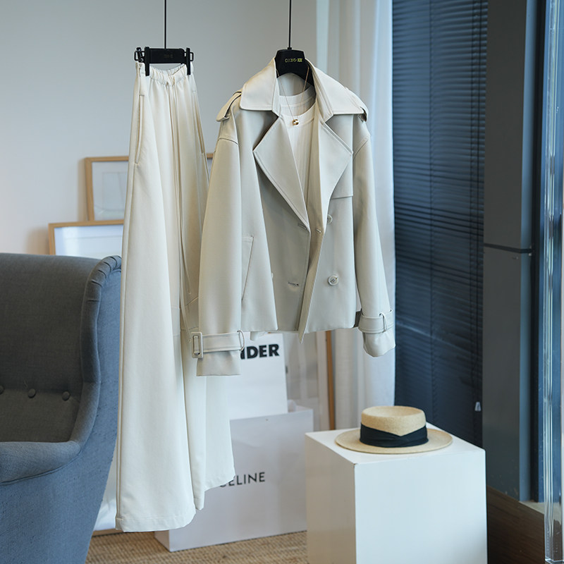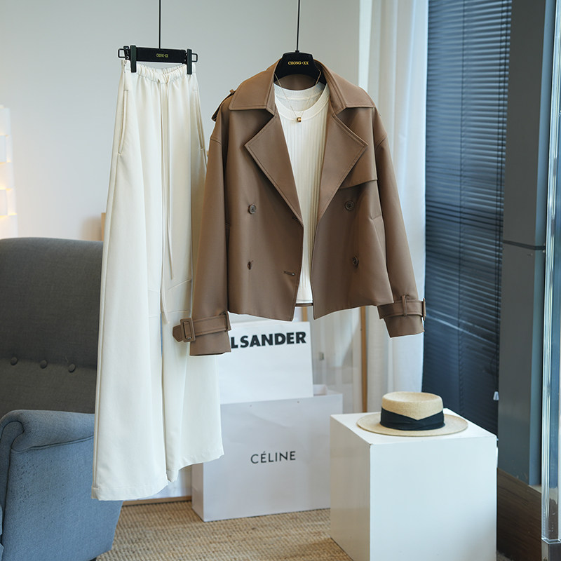 虫小小 气质有型翻领双排扣短款风衣通勤时尚薄外套女秋季新904P