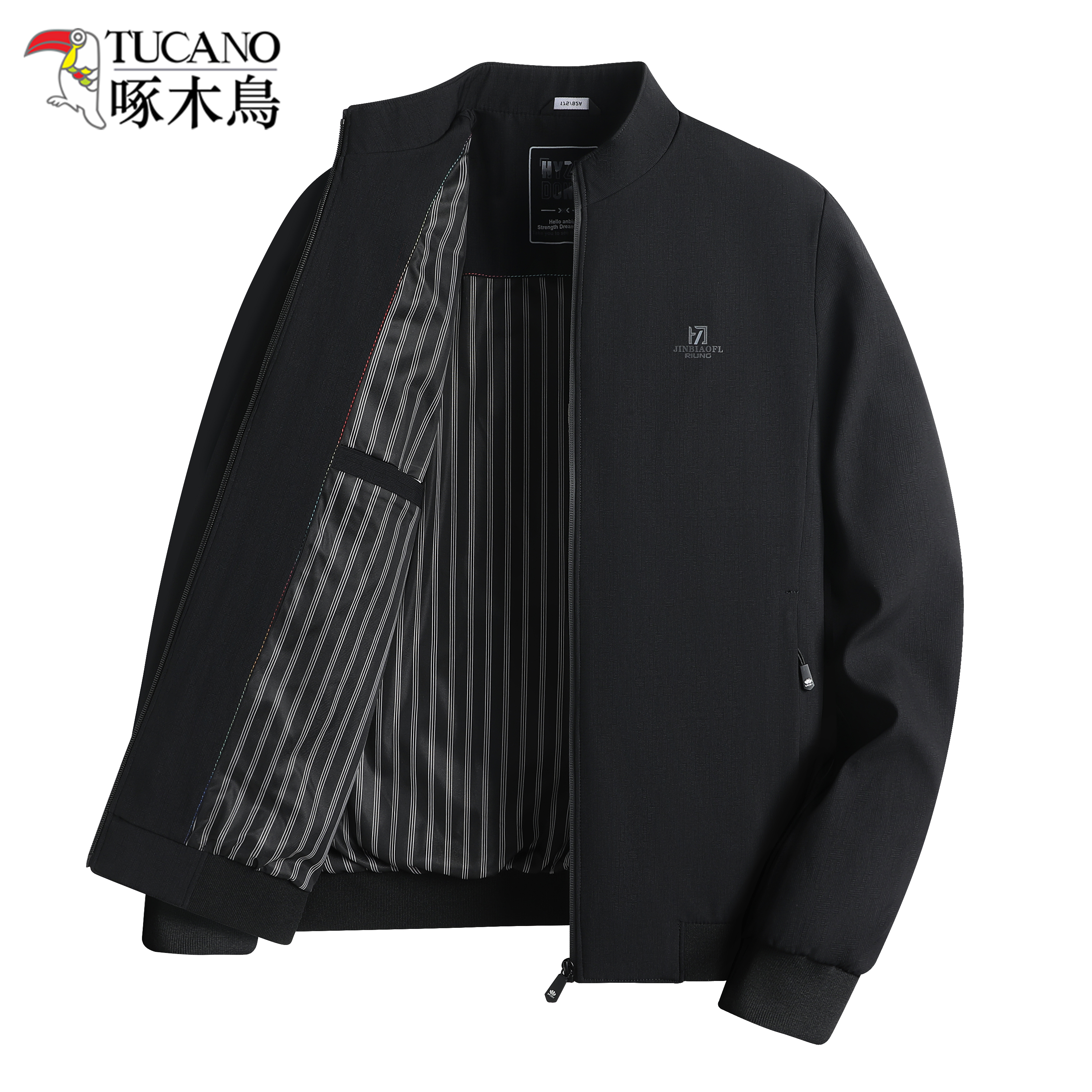 啄木鸟新款男商务休闲夹克爸爸装中老年春秋季立领干部外套上衣